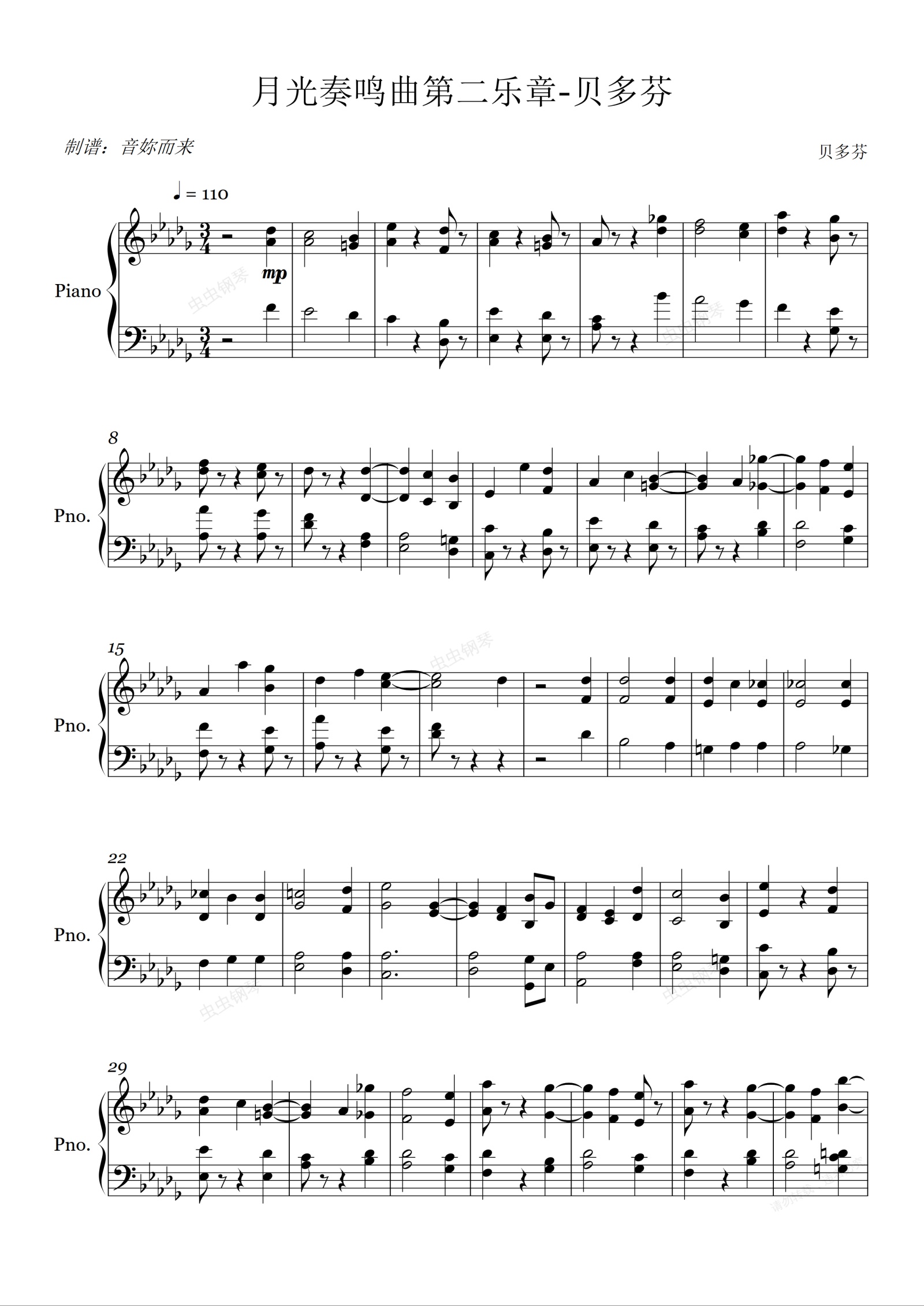 钢琴谱:月光奏鸣曲第二乐章-贝多芬
