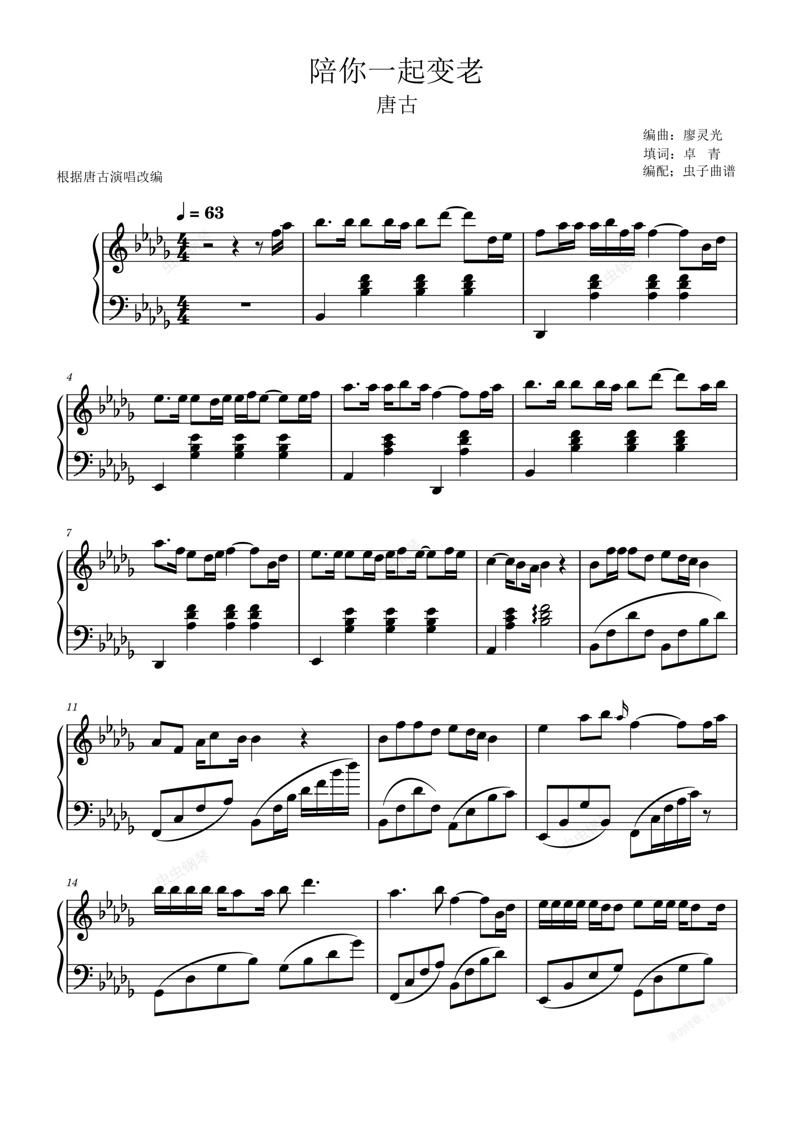 钢琴谱:陪你一起变老(原调唯美抒情)
