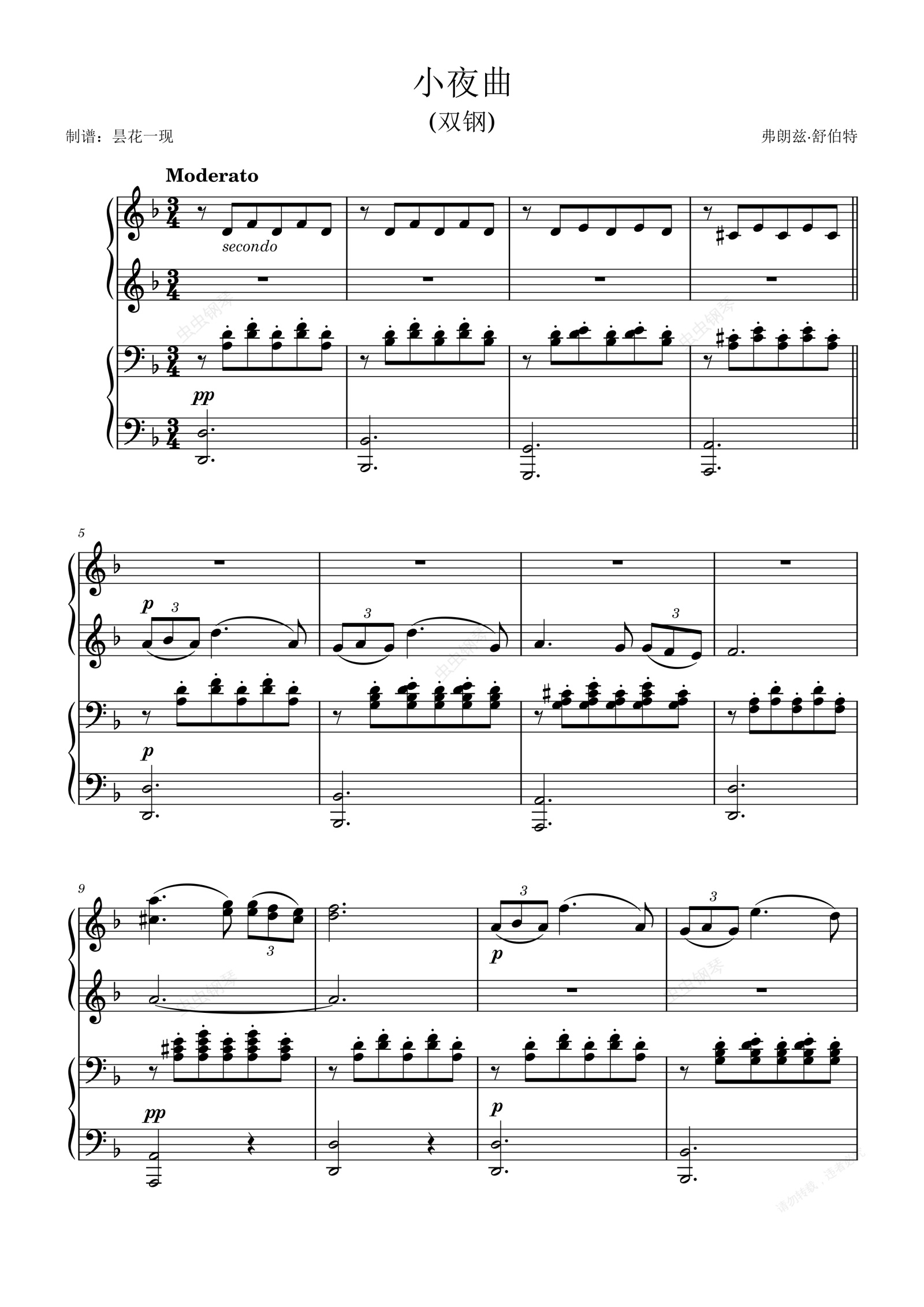 钢琴谱:小夜曲 舒伯特,双钢版本
