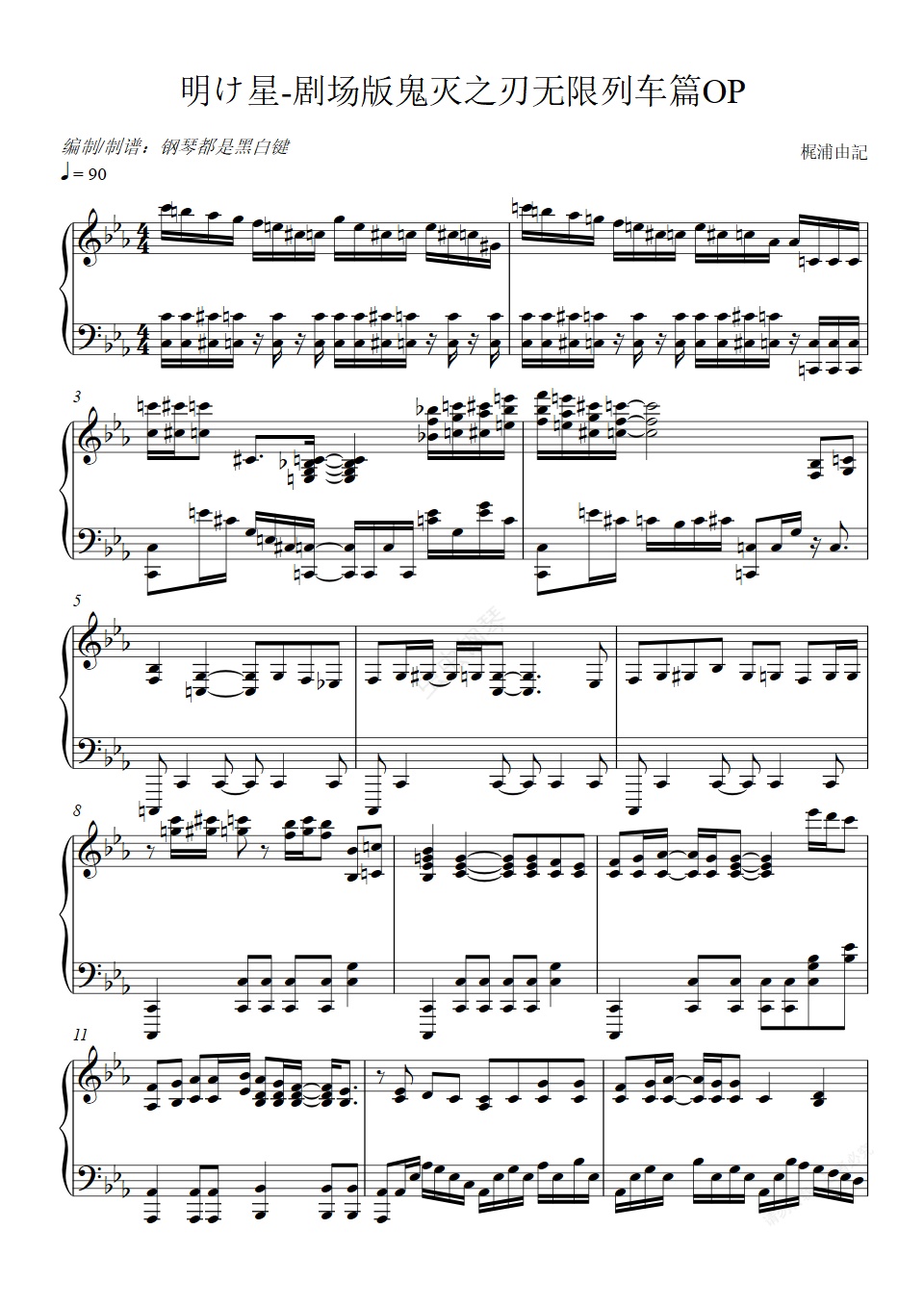 钢琴谱:鬼灭之刃无限列车篇OP-明け星 【极限还原版】