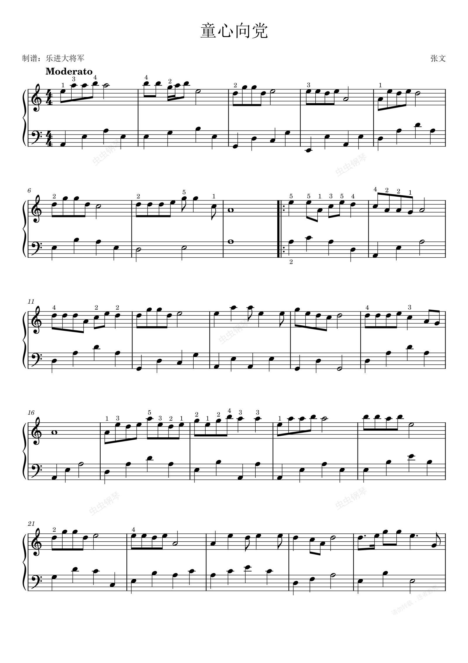 钢琴谱:童心向党 儿童C调版 拜厄基础