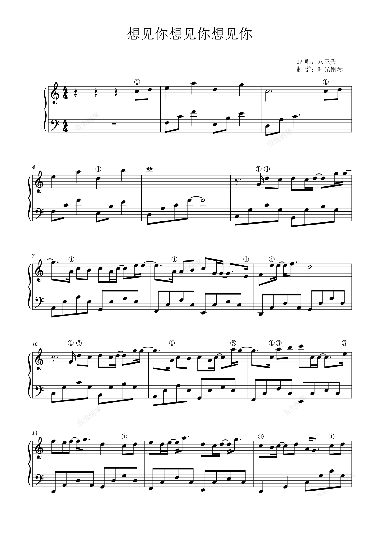 钢琴谱:想见你想见你想见你