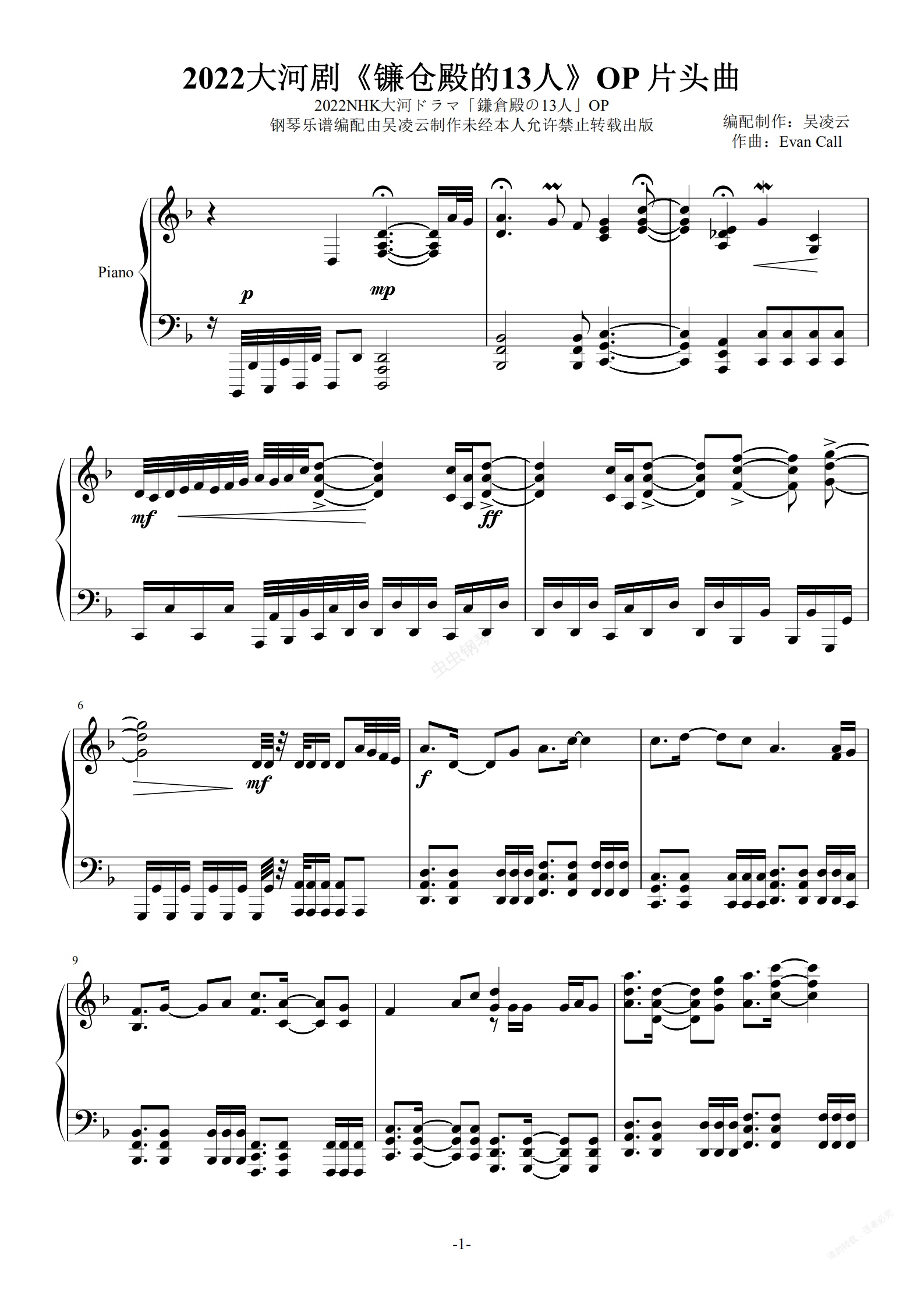 钢琴谱:2022大河剧《镰仓殿的13人》OP 片头曲 吴凌云钢琴演奏版 2022NHK大河ドラマ「鎌倉殿の13人」