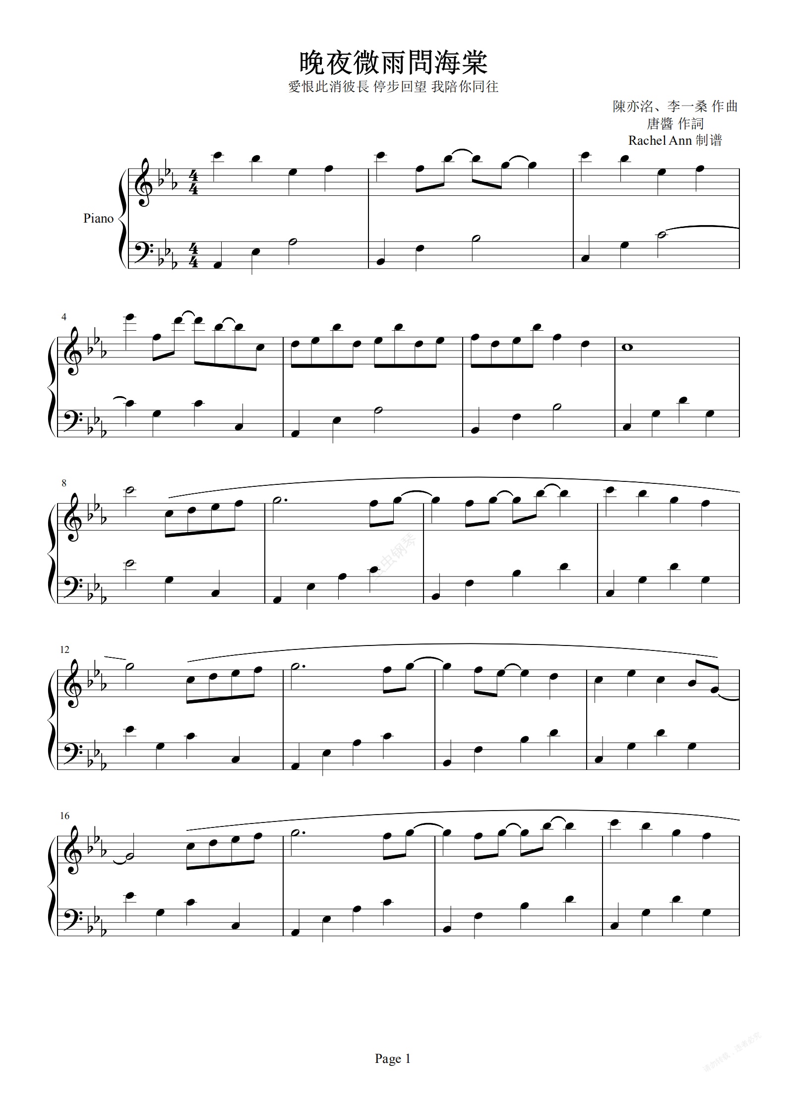 钢琴谱:晚夜微雨问海棠 原调版钢琴独奏 台湾编曲家LouisLiao《二哈和他的白猫师尊》