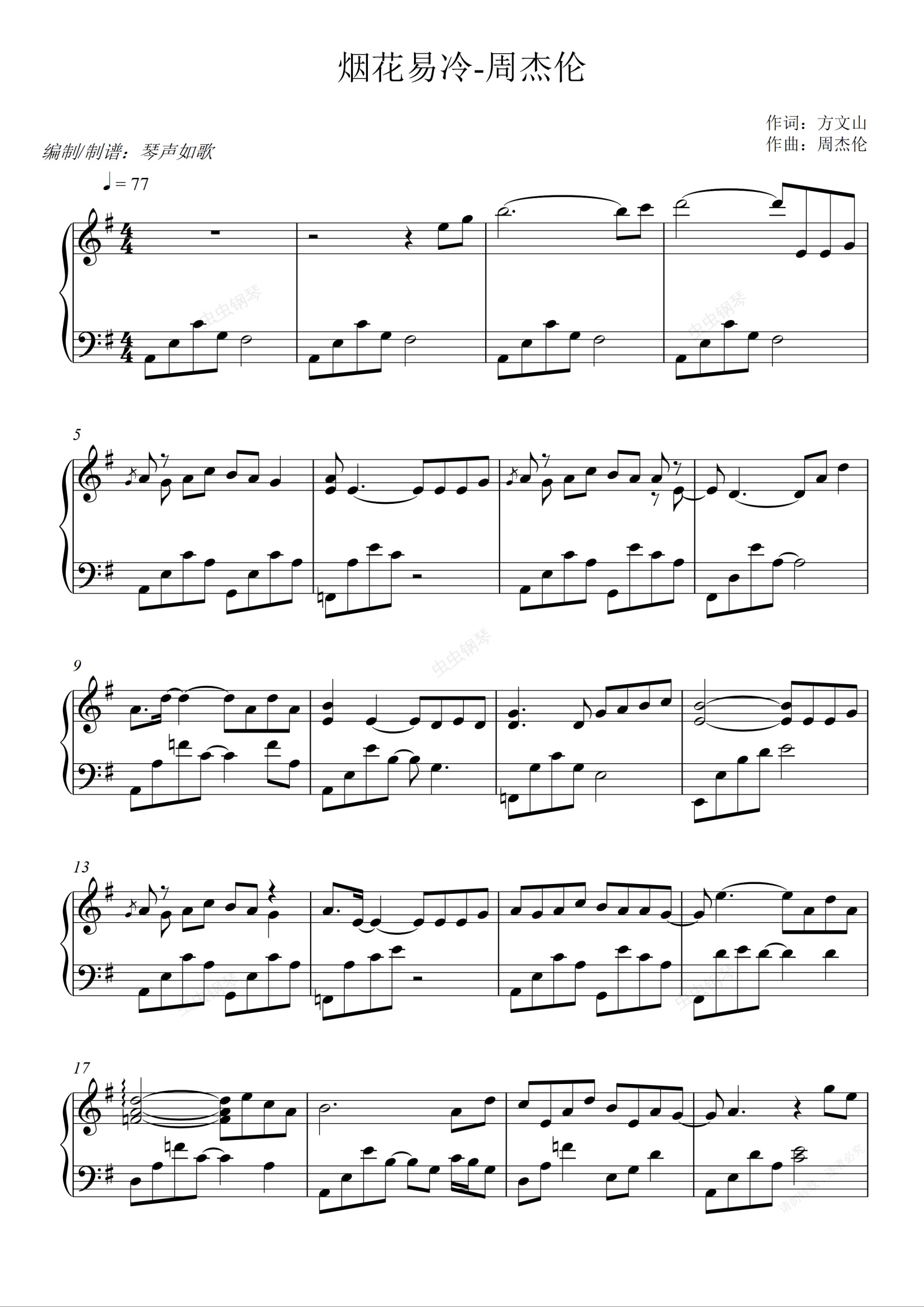 钢琴谱:烟花易冷-周杰伦 【唯美版】