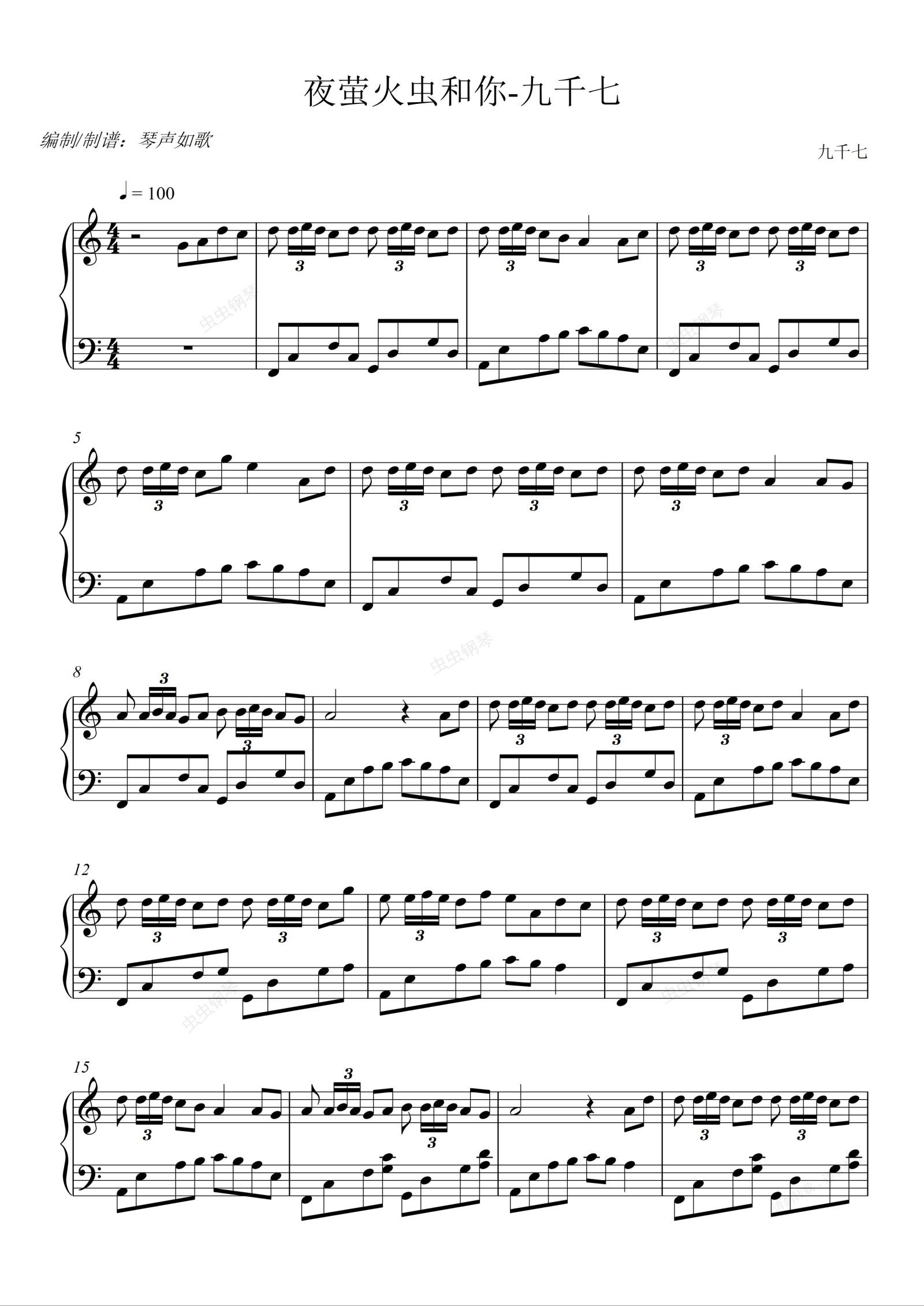 钢琴谱:【所念皆星河专辑】-夜萤火虫和你-热门背景音乐