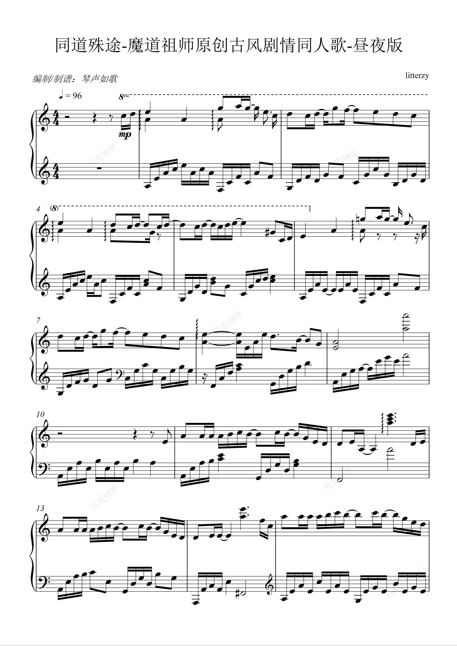 钢琴谱:同道殊途-魔道祖师原创古风剧情同人歌-【超好听昼夜版】