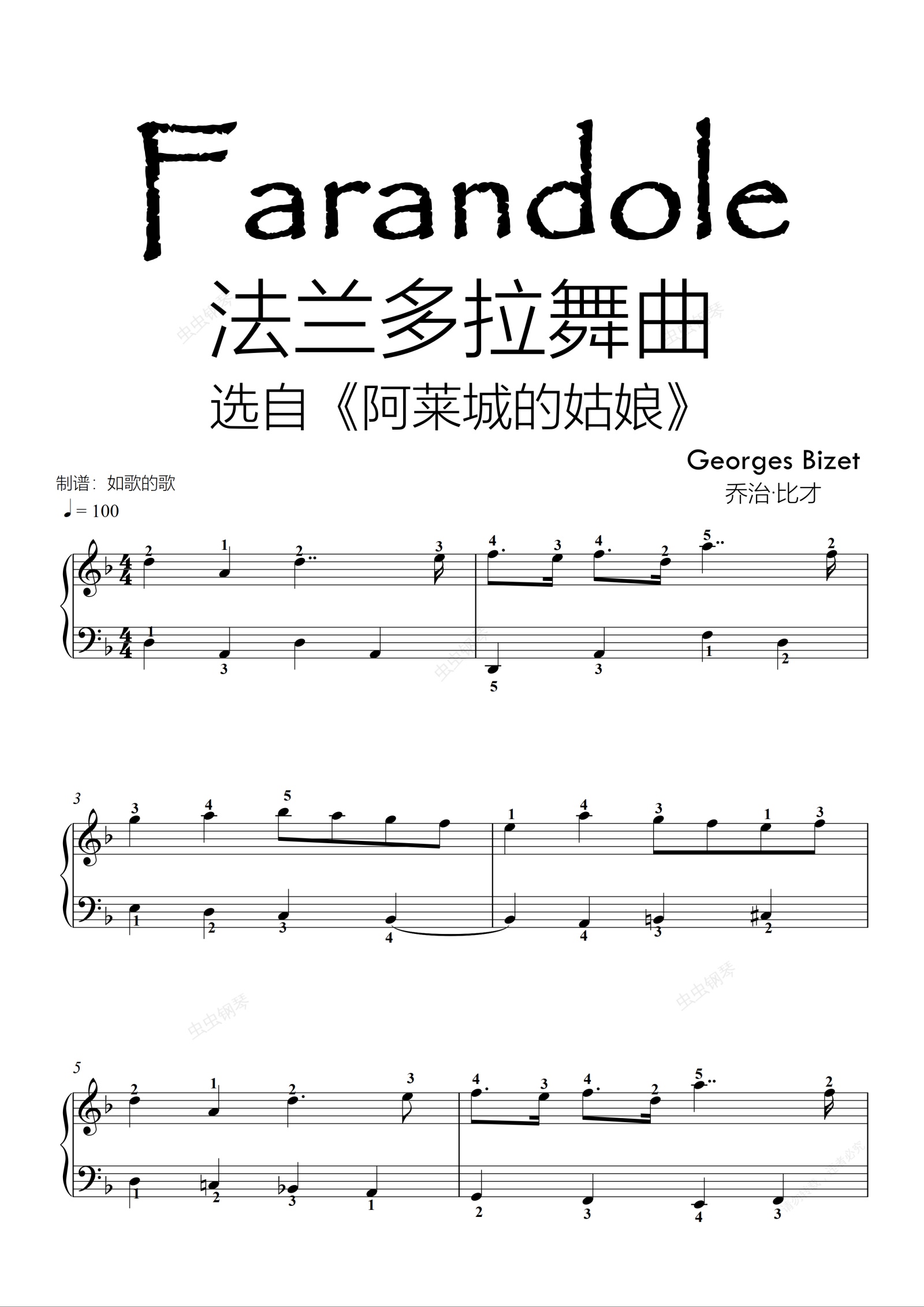 钢琴谱:Farandole法兰多拉(法兰多尔)舞曲简易改编选自《阿莱城的姑娘》蒙童趣味补给(启蒙适用)