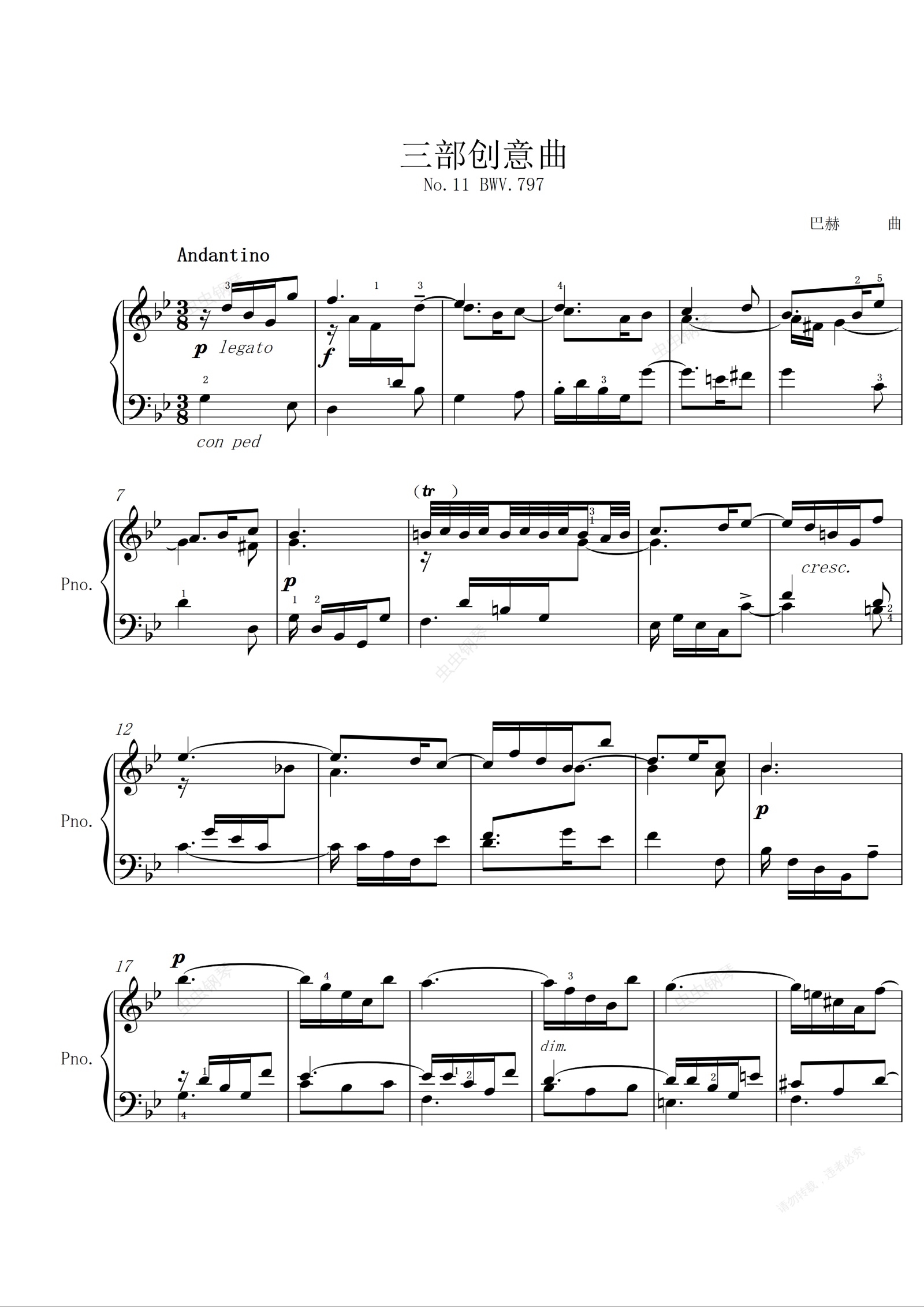 钢琴谱:川音-八级-第一套-2.三部创意曲 BWV.797 N0.11