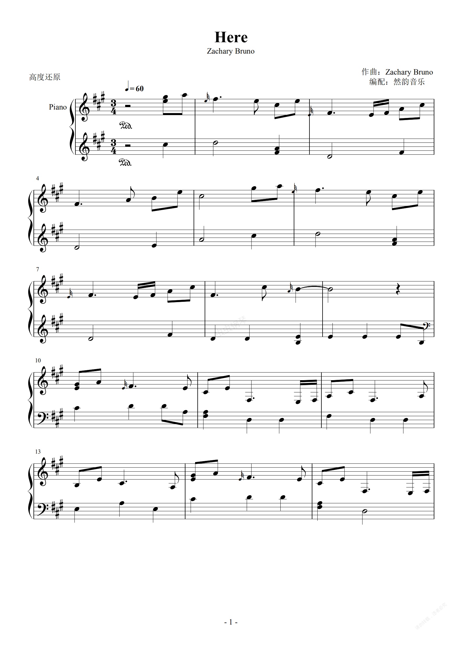 钢琴谱:Here-Zachary Bruno 史诗级还原