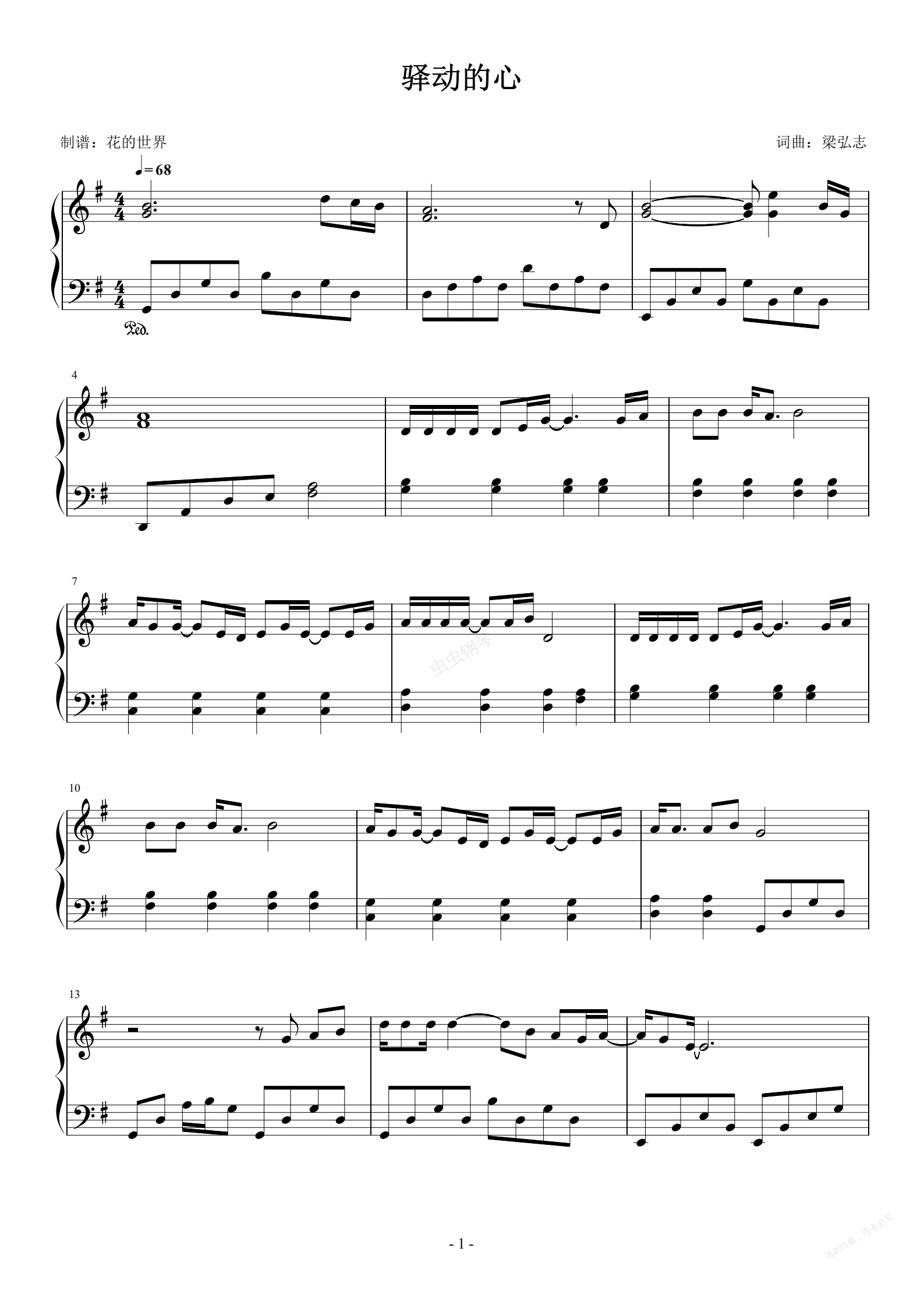 钢琴谱:驿动的心 简易版 姜育恒(粤语版祝福)