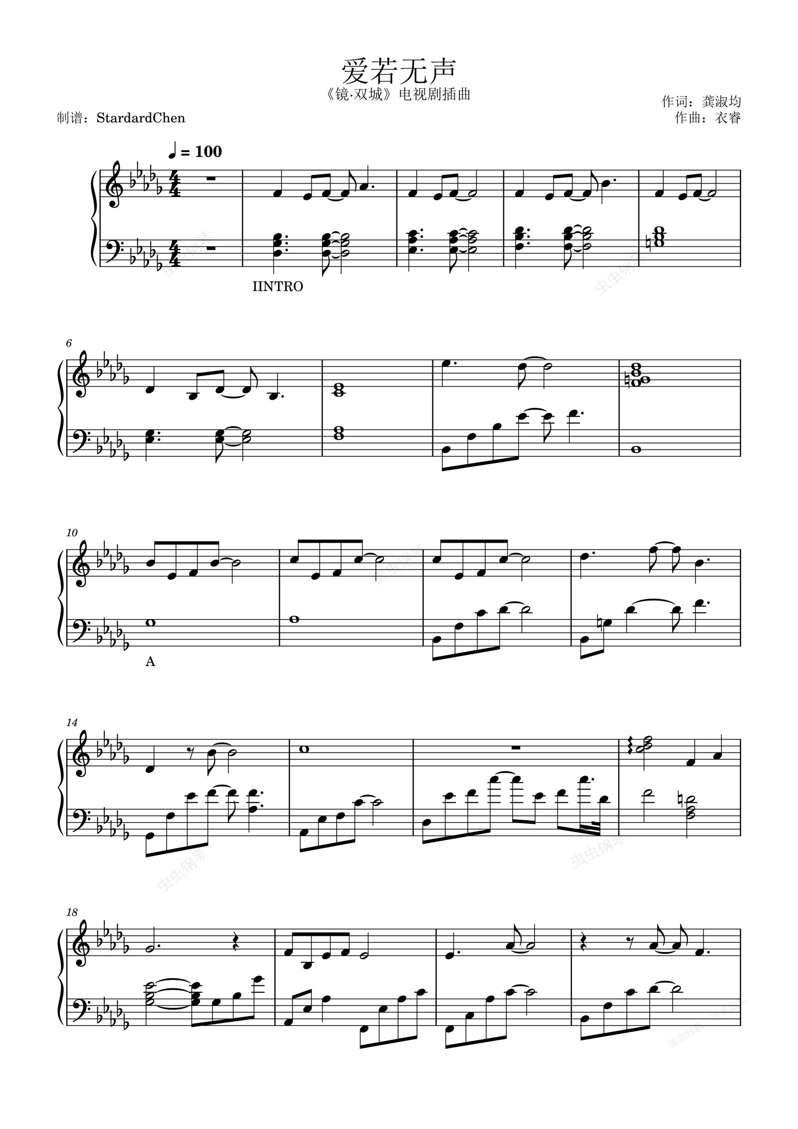 钢琴谱:毛不易-爱若无声(《镜·双城》电视剧插曲)