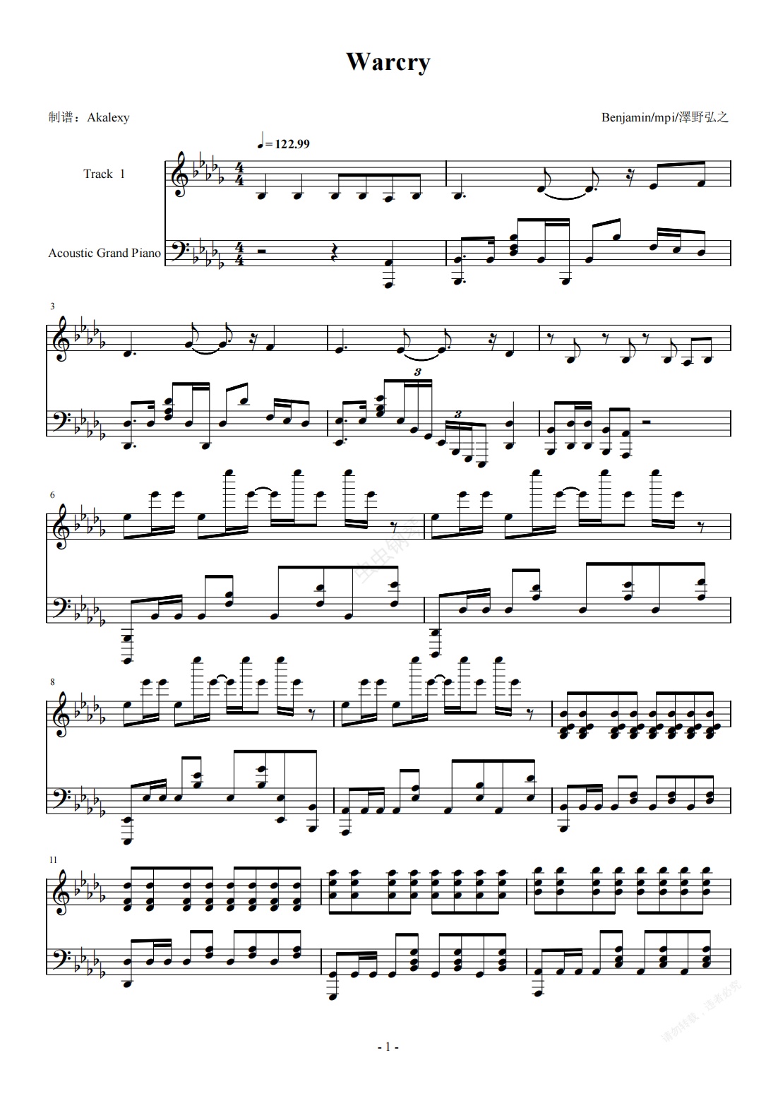 钢琴谱:甲铁城的卡巴内瑞《Warcry》