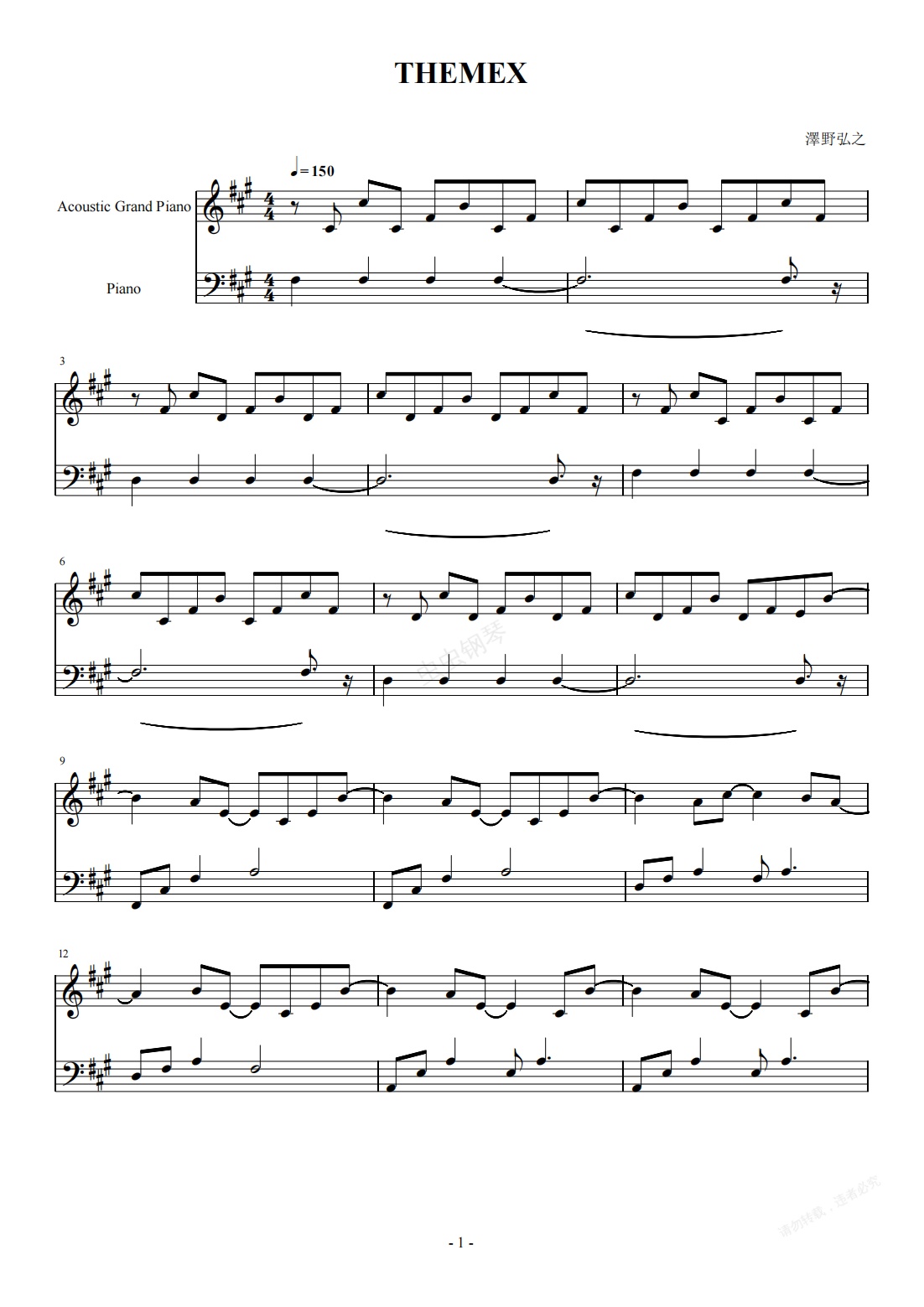 钢琴谱:异度神剑X《THEMEX》
