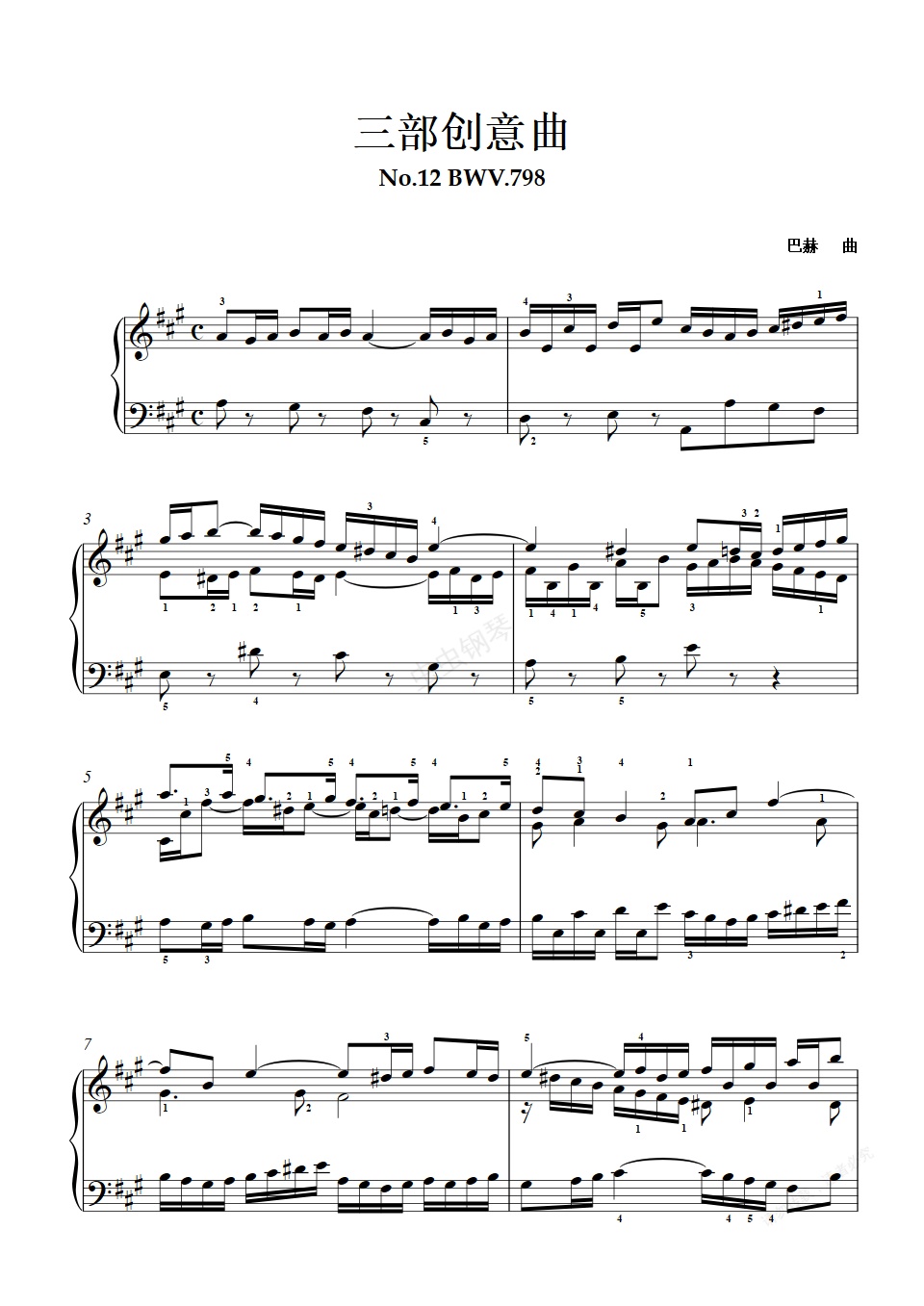 钢琴谱:川音-九级-第一套-2三部创意曲 No.12 BWV798