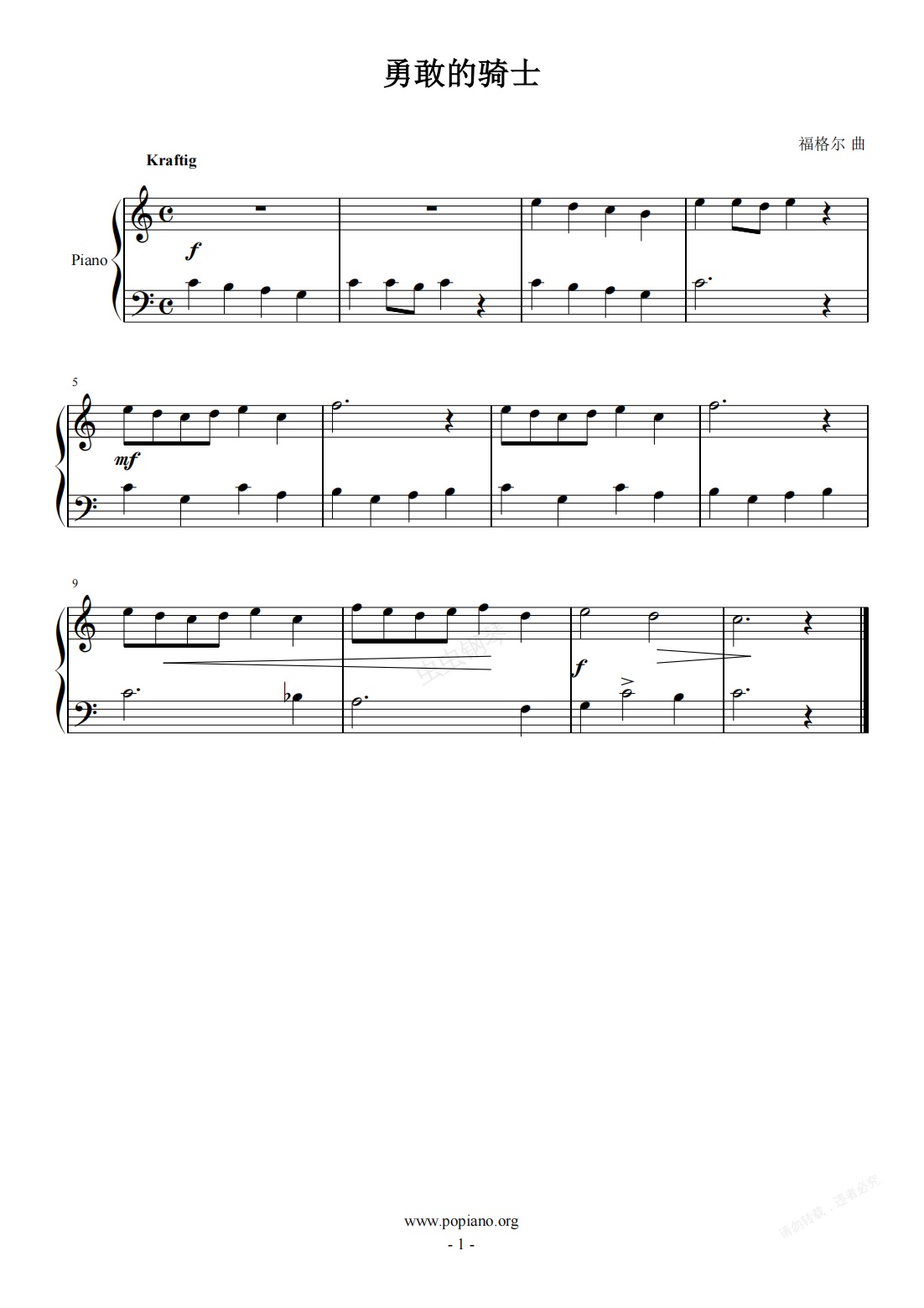 钢琴谱:《勇敢的骑士》川音一级