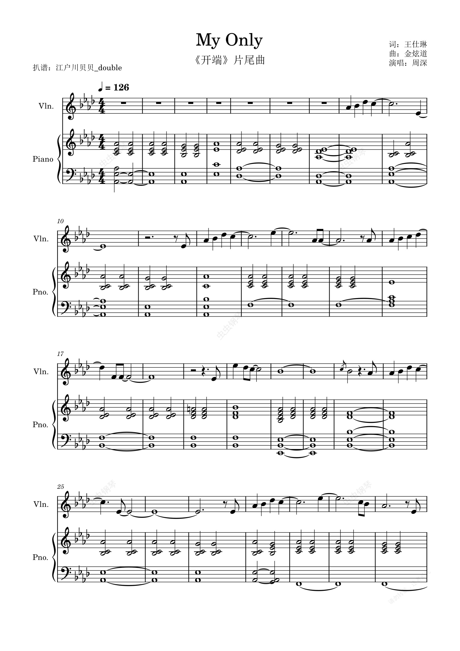 钢琴谱:【开端】片尾曲《My Only》(周深)