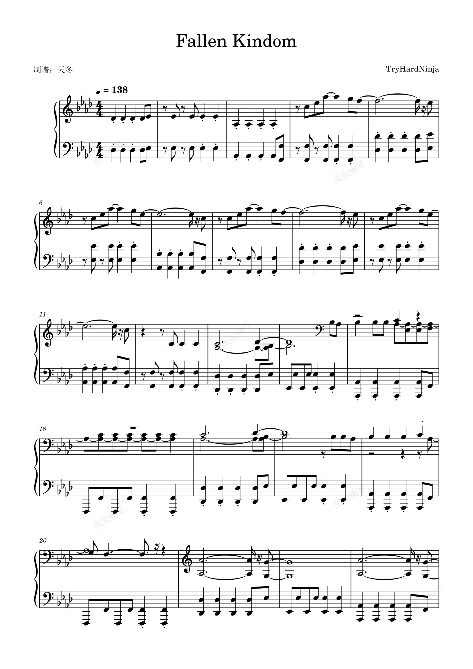 钢琴谱:Fallen Kindom(失落的王国)我的世界动画