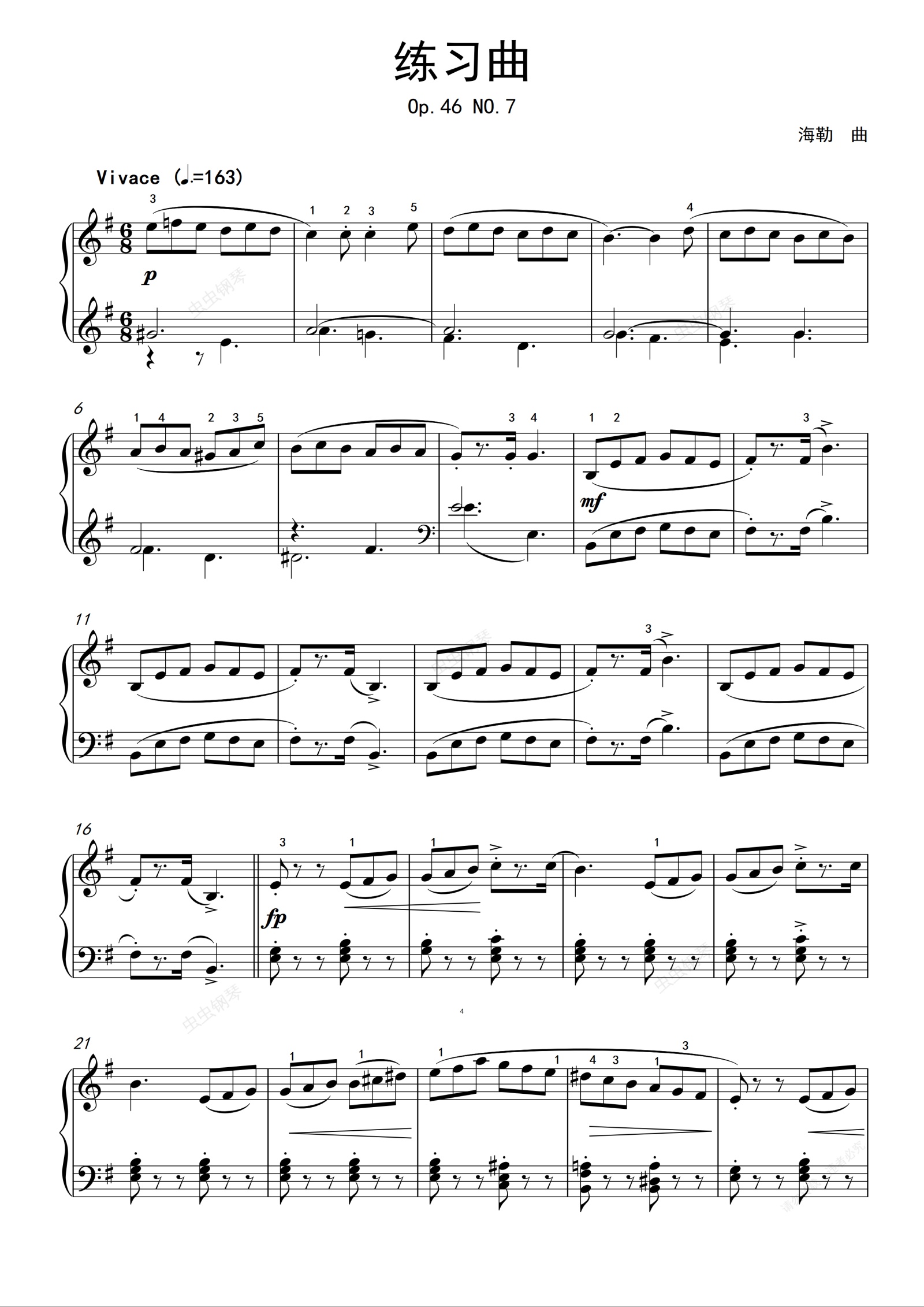 钢琴谱:5级-练习曲-海勒Op.46 No.7