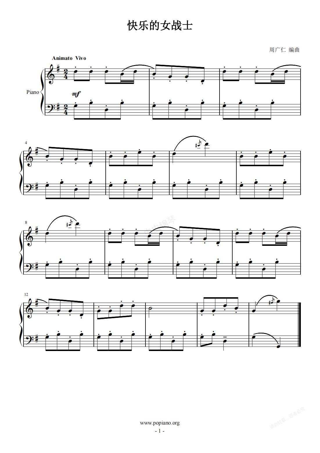 钢琴谱:《快乐的女战士》川音二级