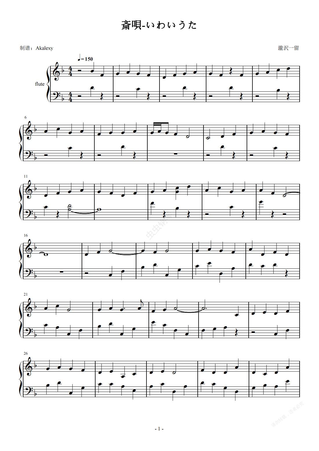 钢琴谱:倭人异闻录《斎唄-いわいうた》