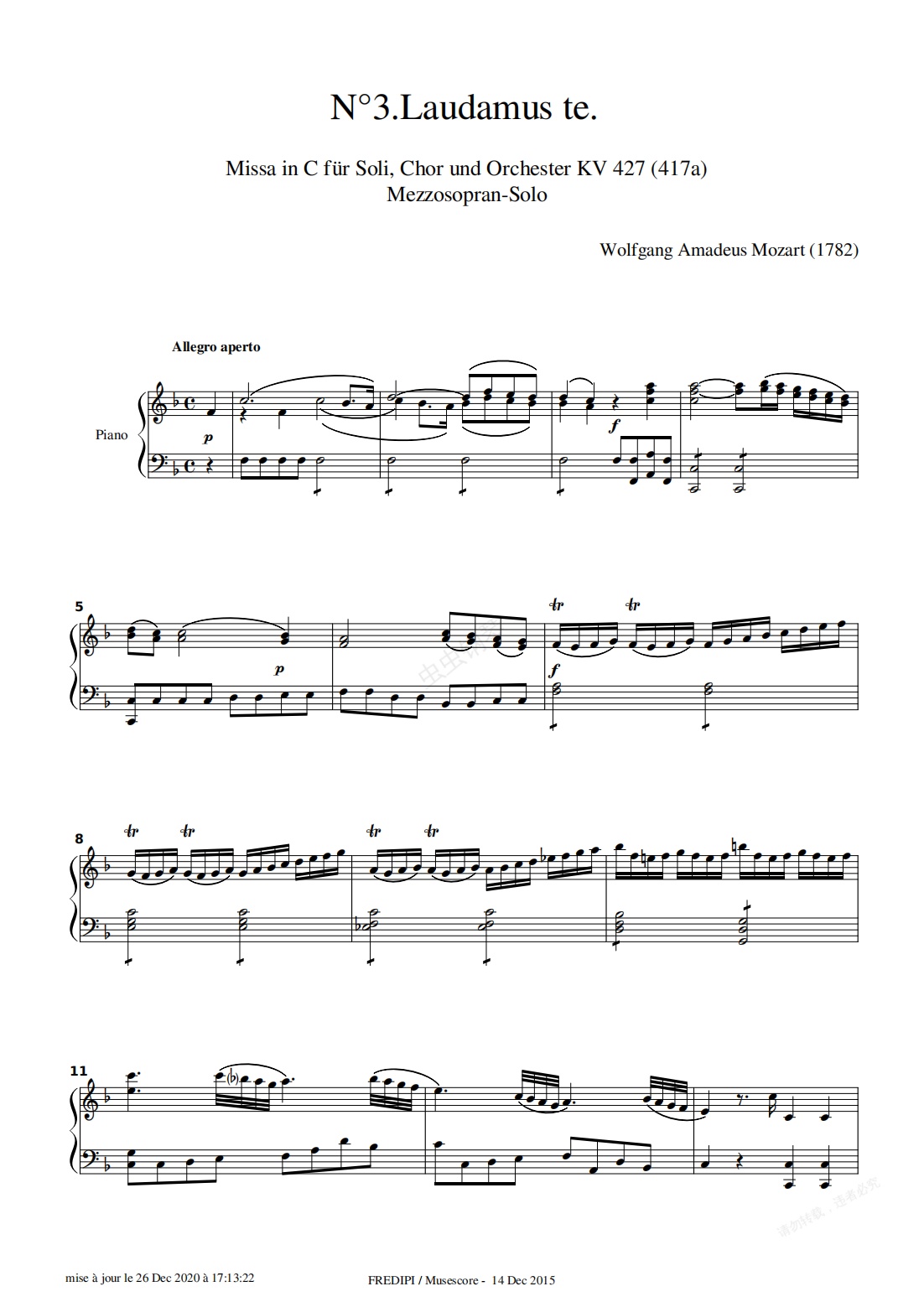 钢琴谱:莫扎特c小调大弥撒 Mass in C minor, K. 427: Laudamus te
