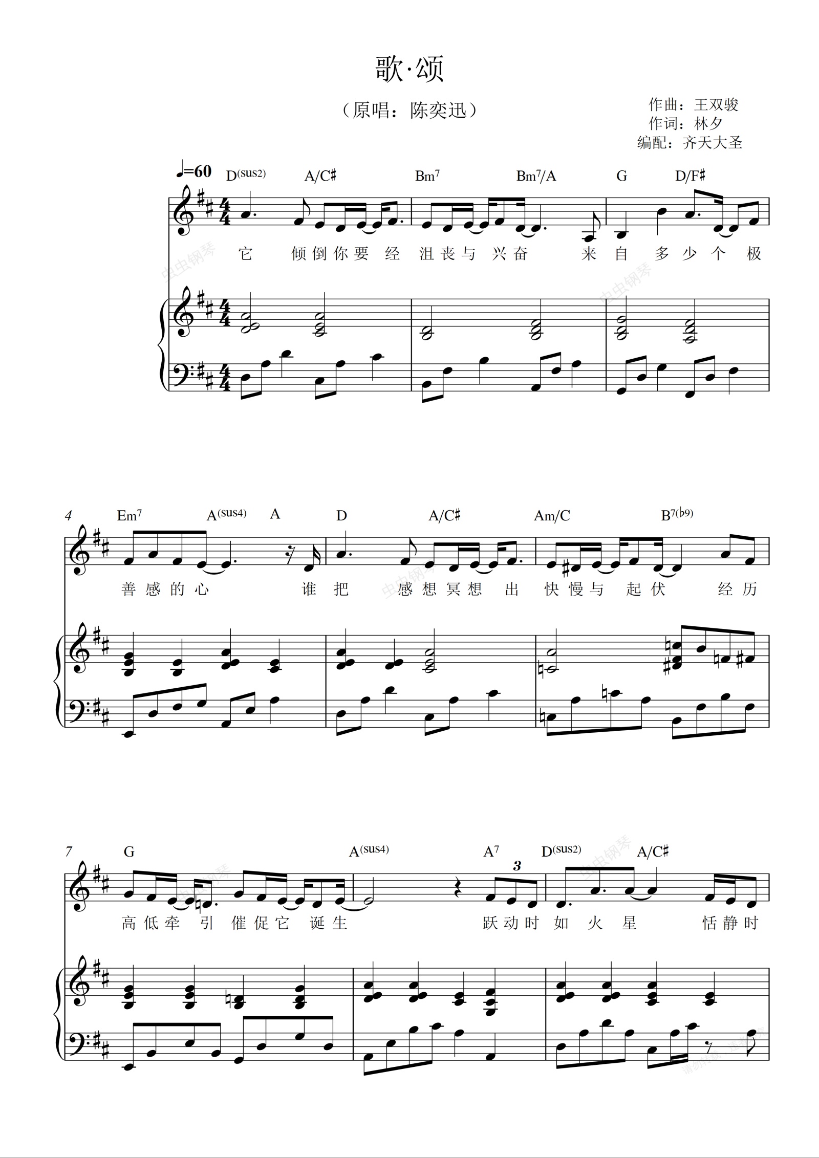 钢琴谱:歌·颂-陈奕迅 弹唱谱