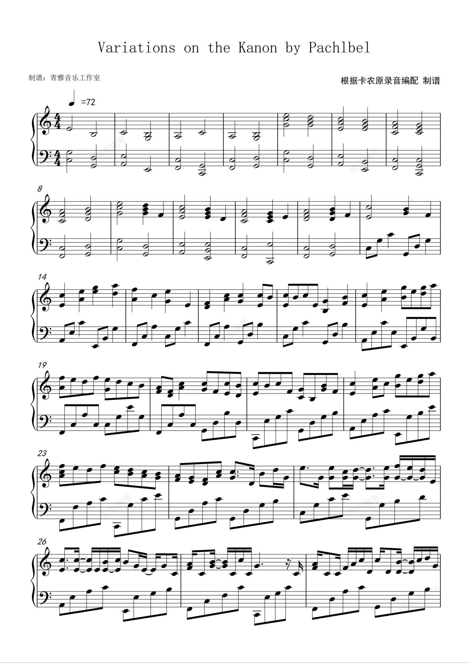 钢琴谱:Variations on the Kanon by Pachlbe 卡农