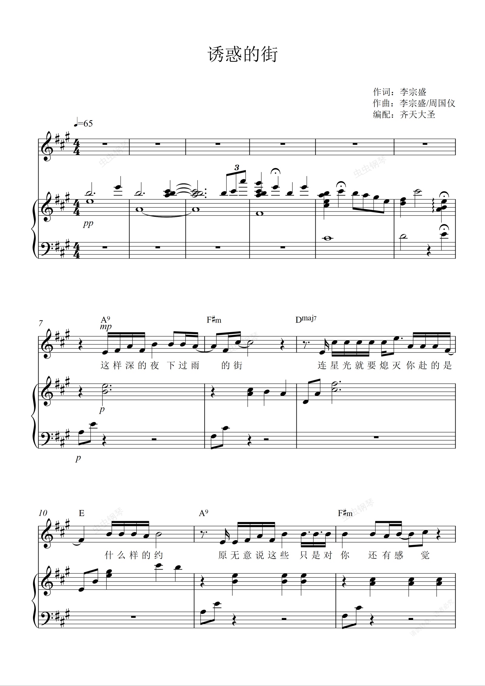 钢琴谱:诱惑的街-张敬轩 林忆莲 弹唱谱
