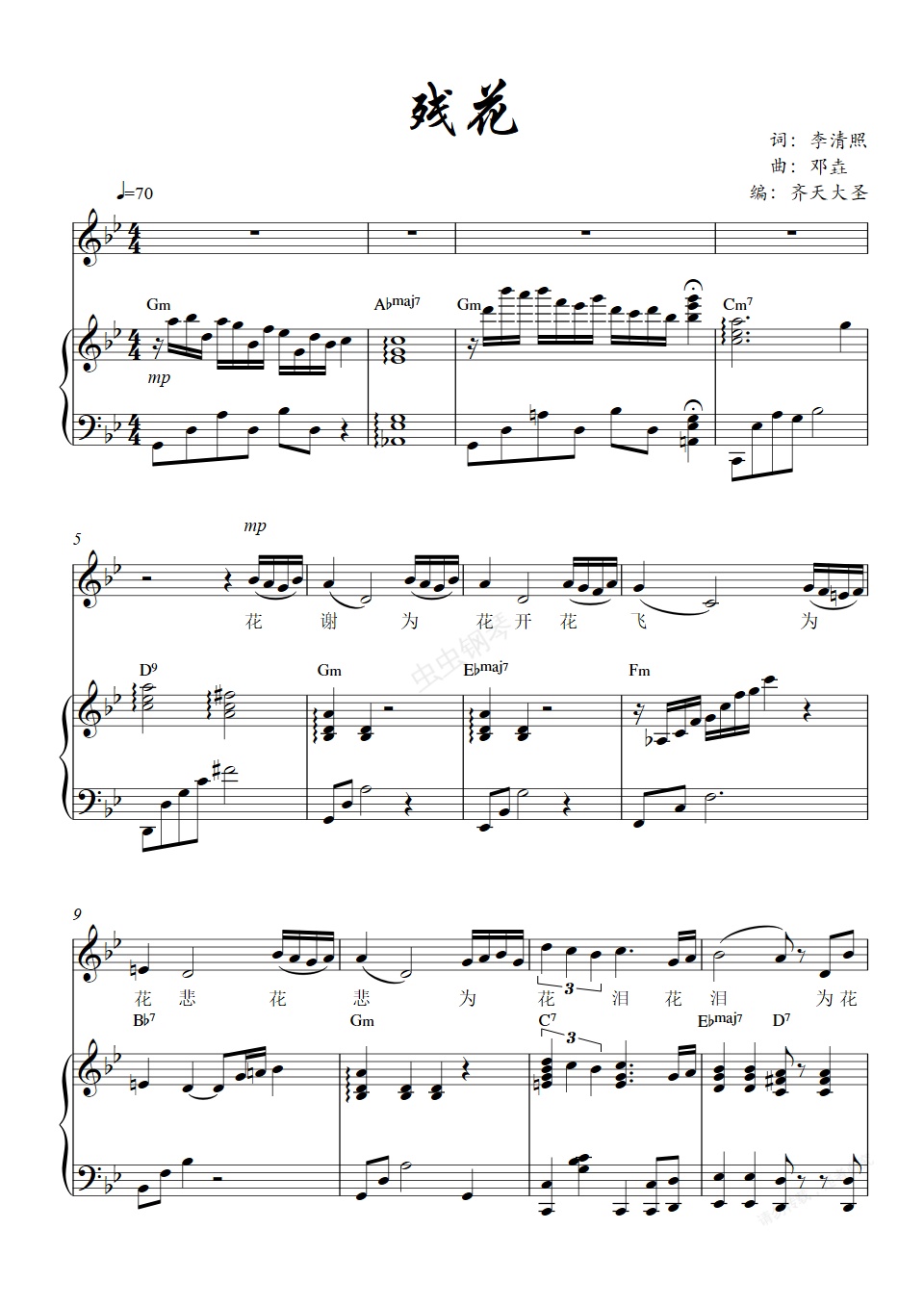 钢琴谱:残花-邓垚作曲 弹唱正谱