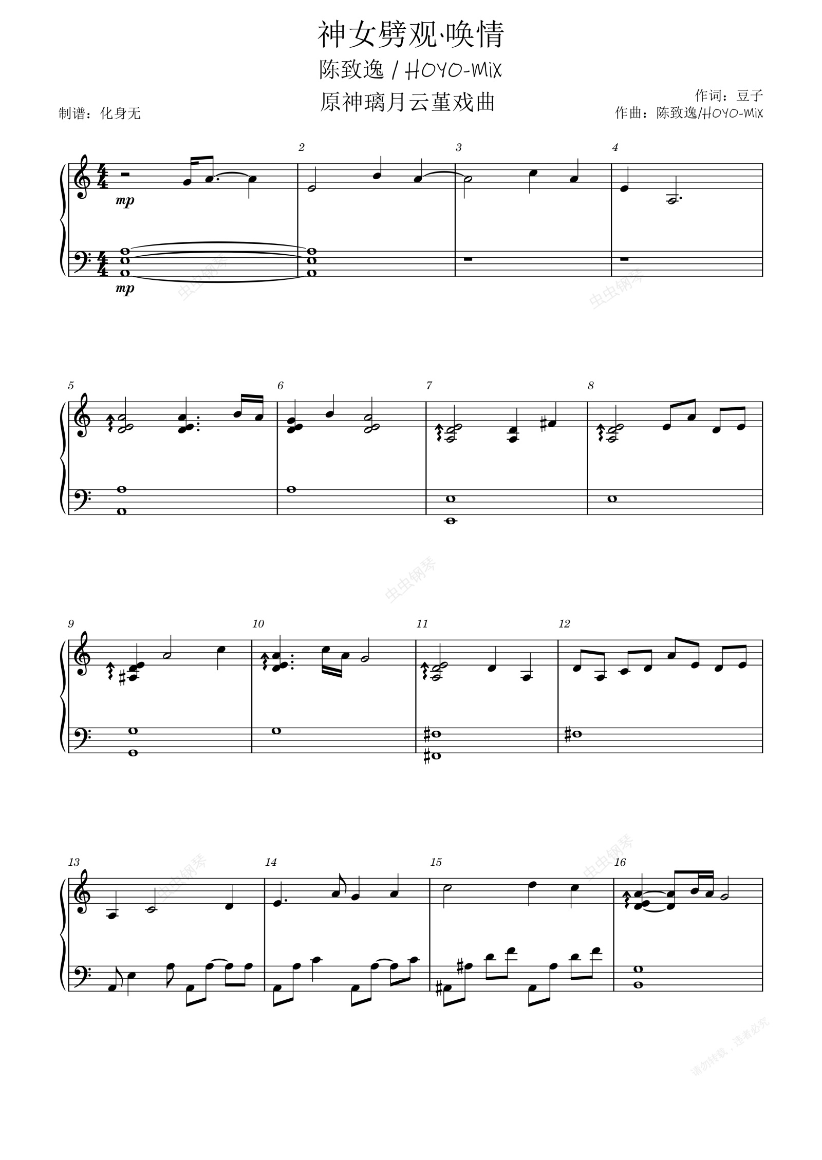钢琴谱:神女劈观·唤情 原神云堇戏曲