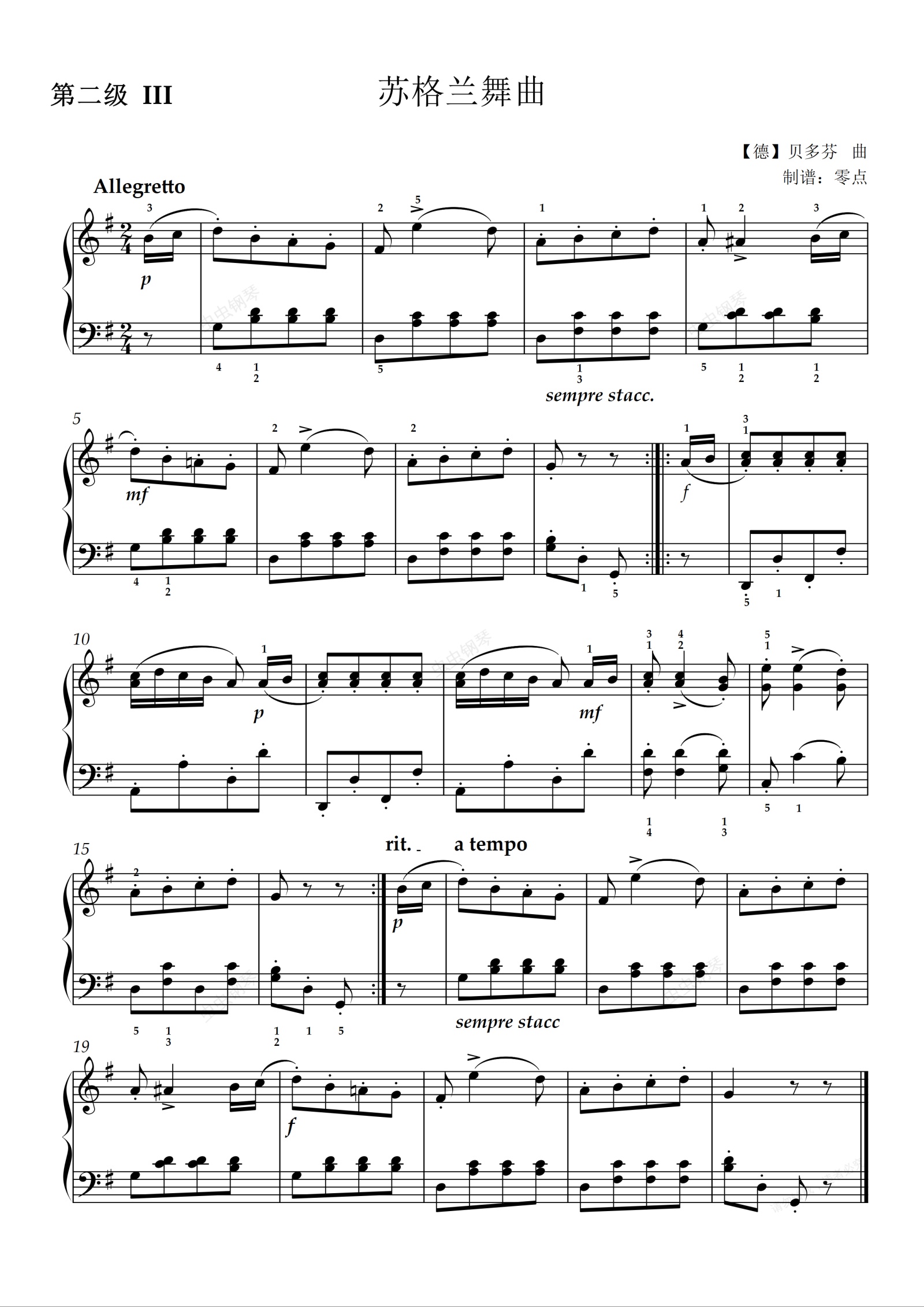 钢琴谱:第二级 苏格兰舞曲