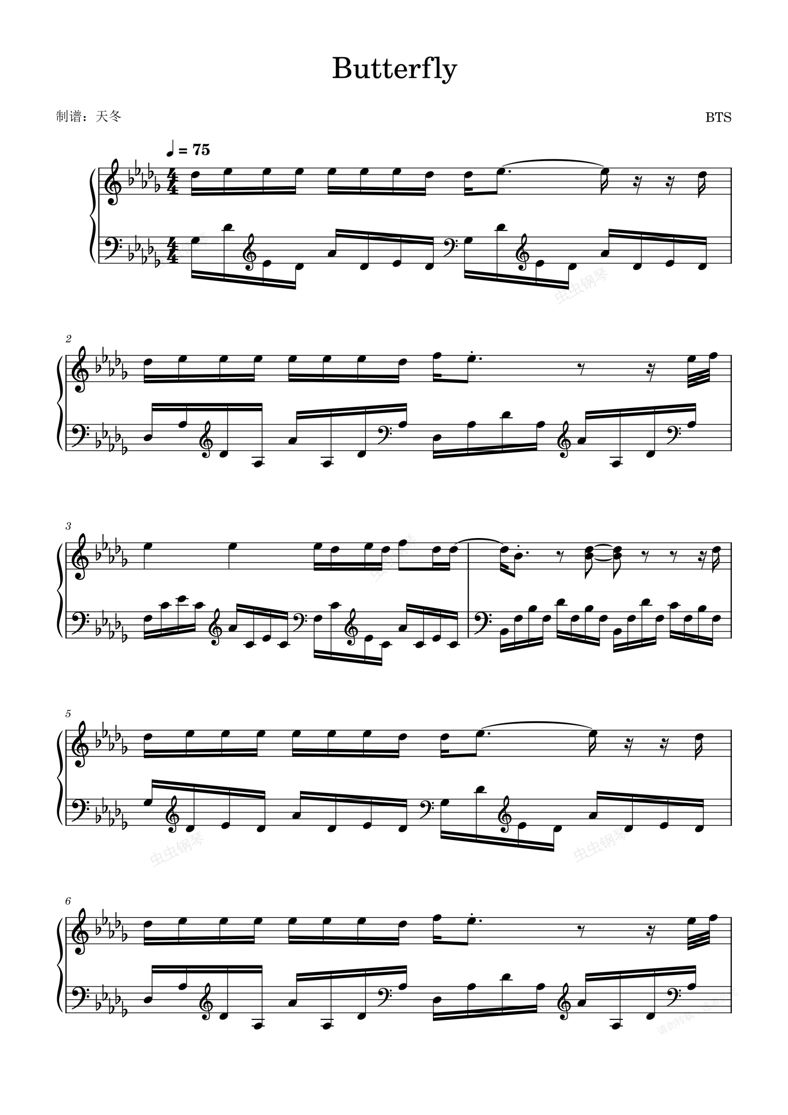 钢琴谱:Butterfly(蝴蝶)-防弹少年团