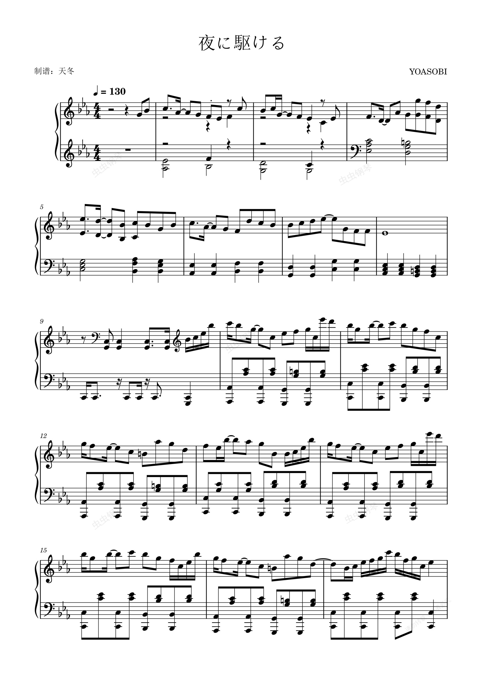 钢琴谱:夜に駆ける(向夜晚奔去)RACING INTO THE NIGHT