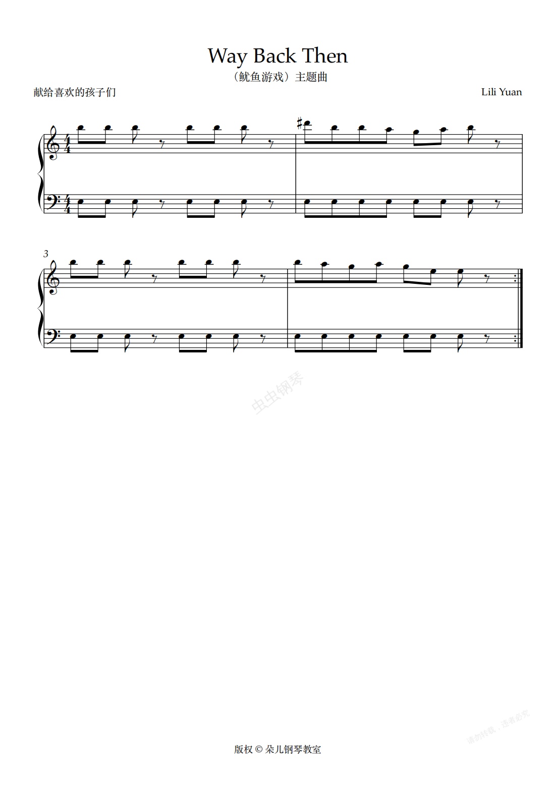 钢琴谱:鱿鱼游戏/Way Back then(选段)LY