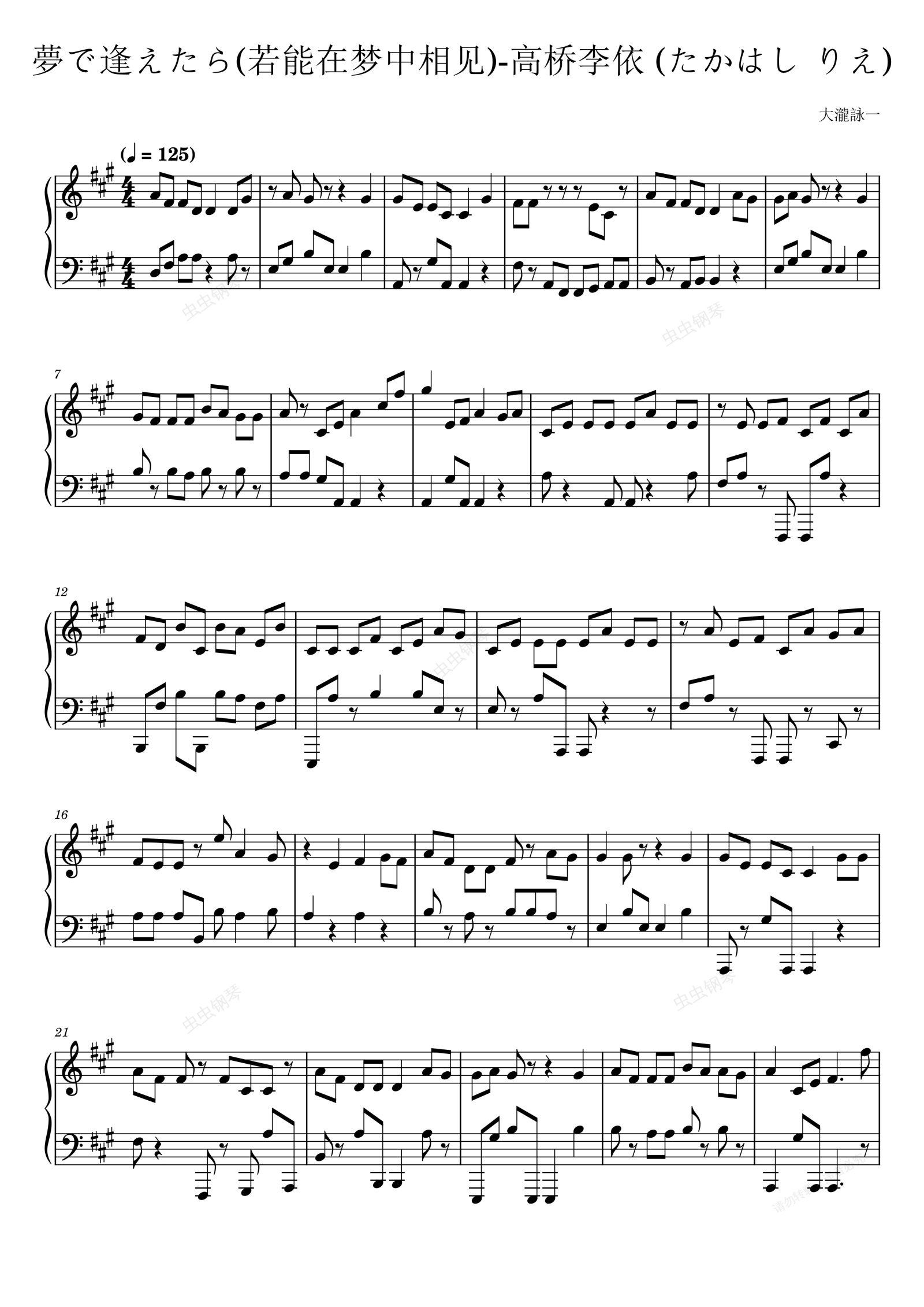 钢琴谱:夢で逢えたら(若能在梦中相见)-高桥李依 (たかはし りえ)