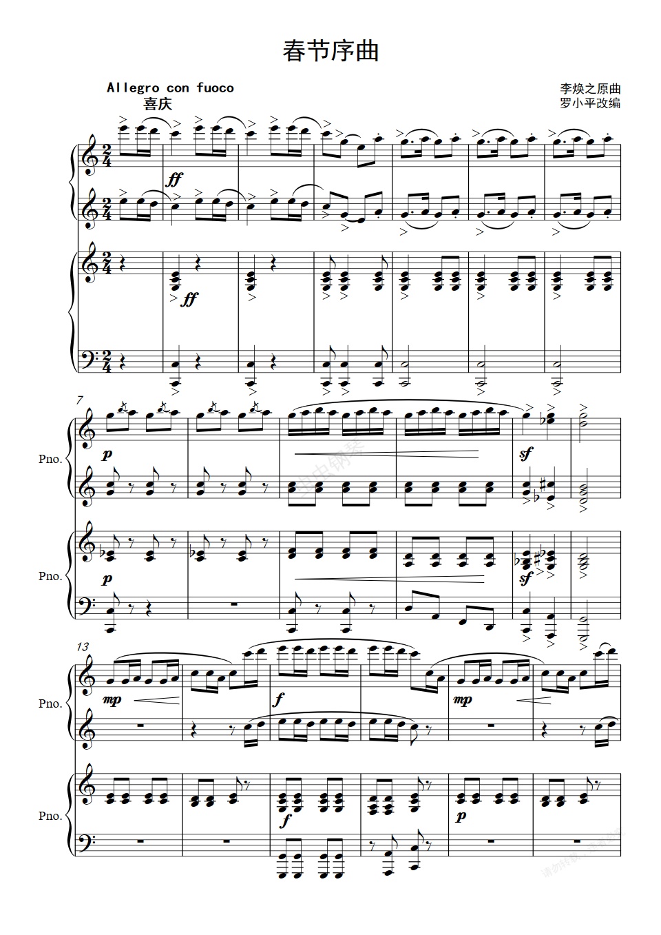 钢琴谱:春节序曲