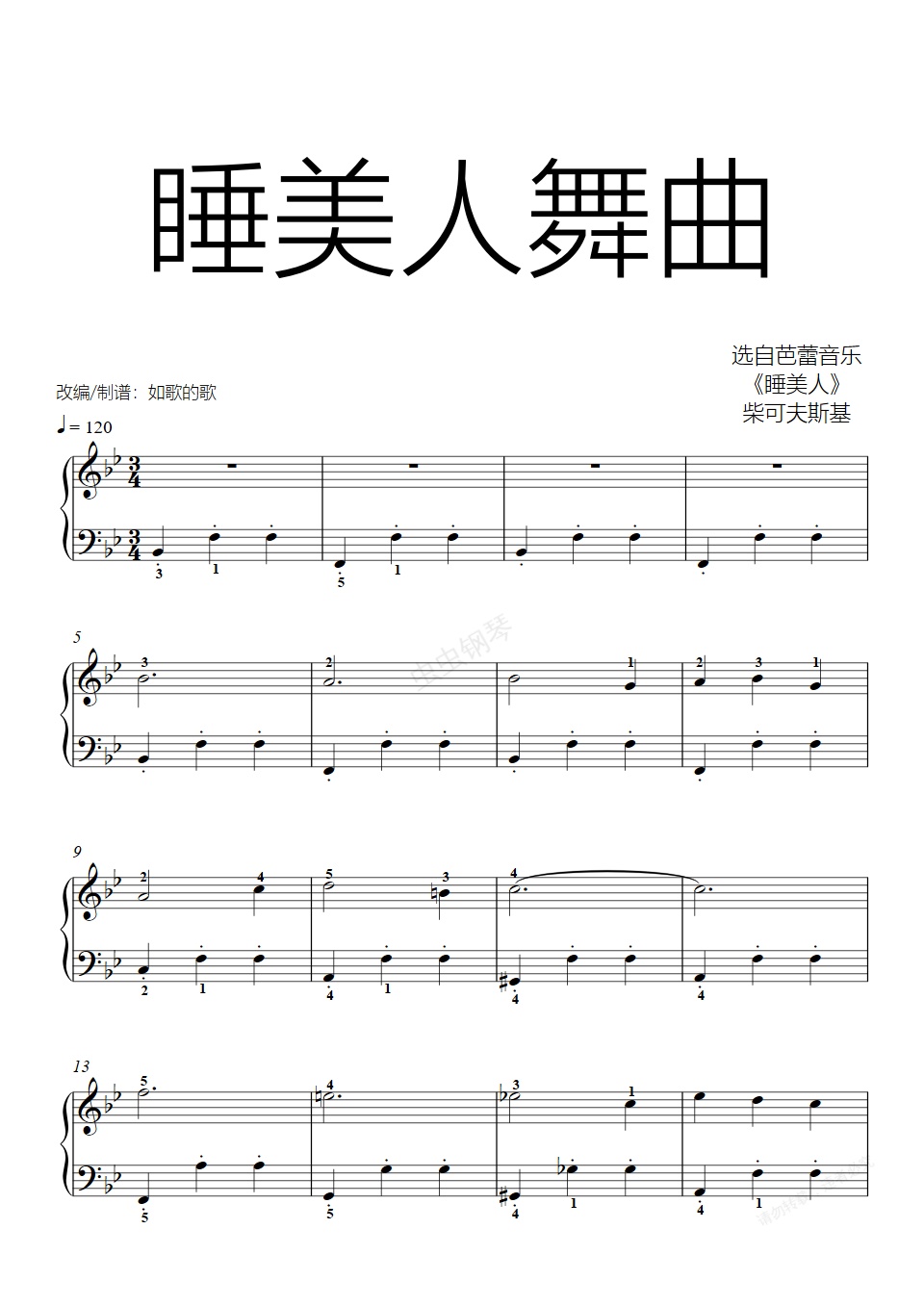 钢琴谱:睡美人圆舞曲主题-经典芭蕾乐段简易改编-蒙童趣味补给