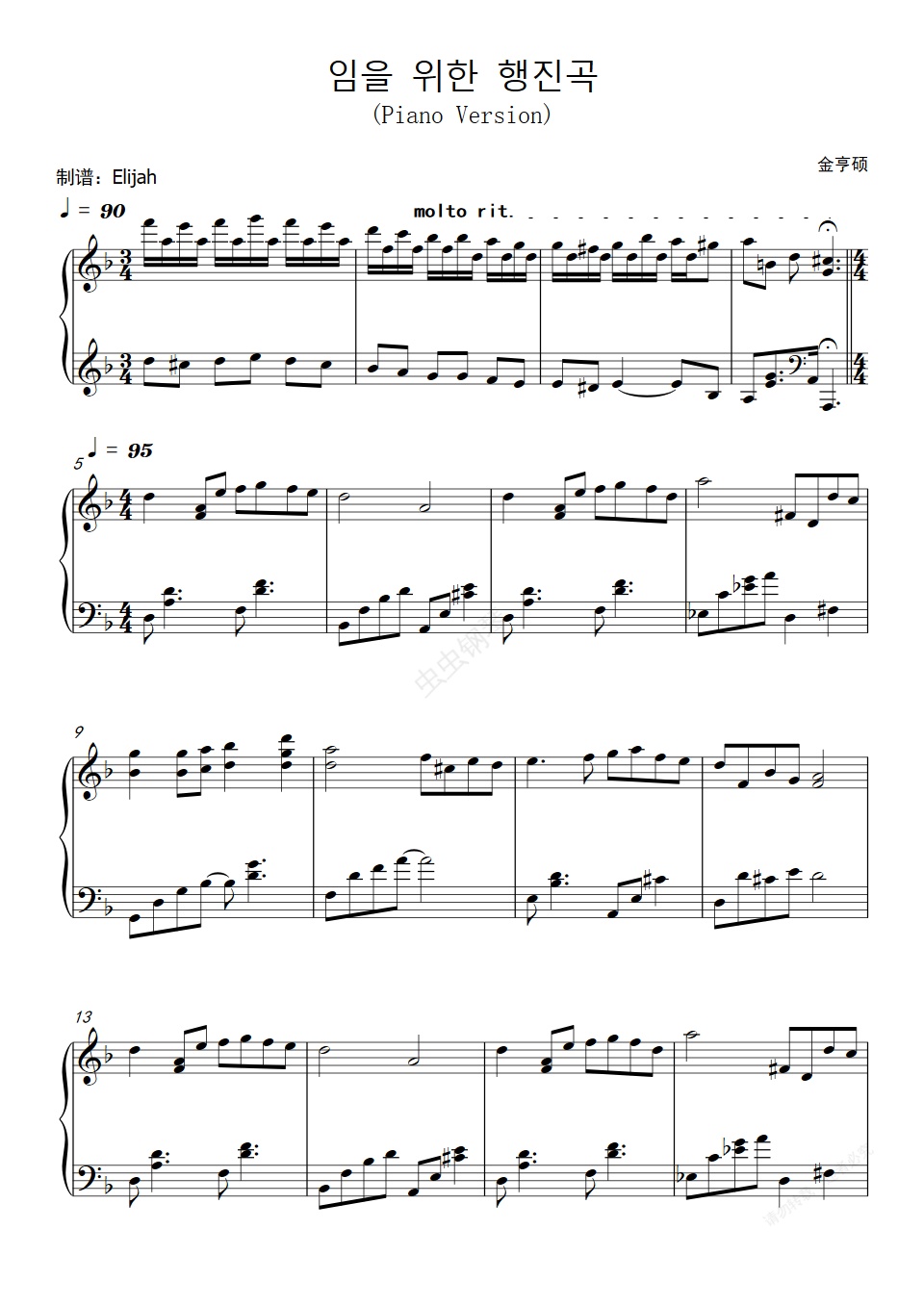 钢琴谱:임을 위한 행진곡 - 金亨硕