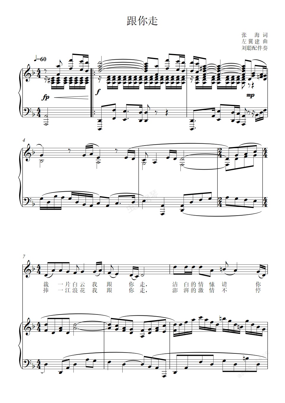 钢琴谱:跟你走—完整曲谱