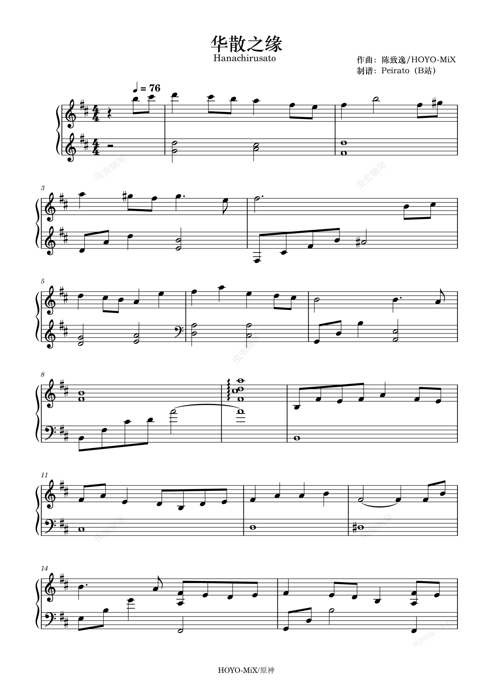 钢琴谱:原神-神里BGM-华散之缘-完美编配版