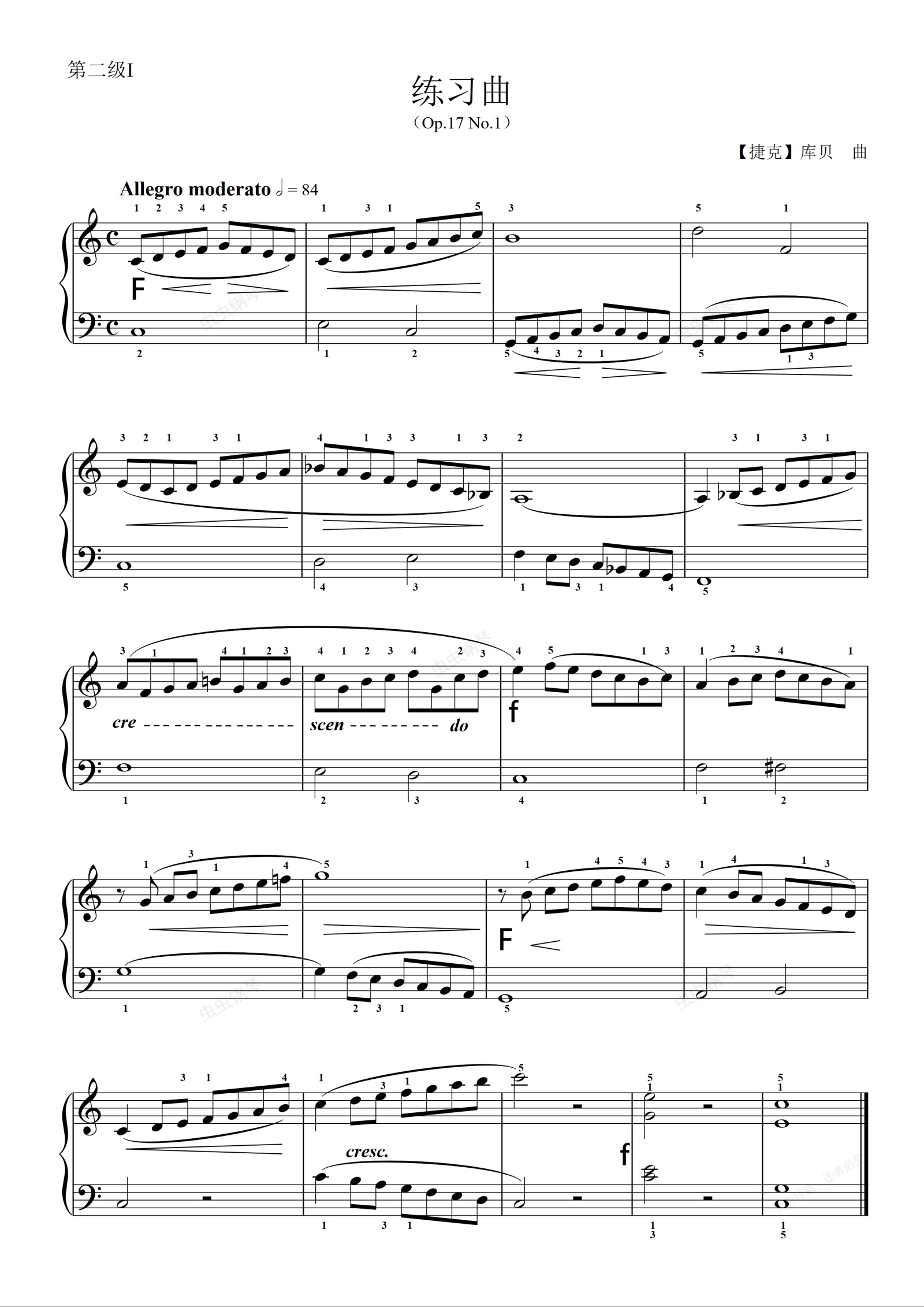 钢琴谱:第二级  练习曲(Op.17 No.1)