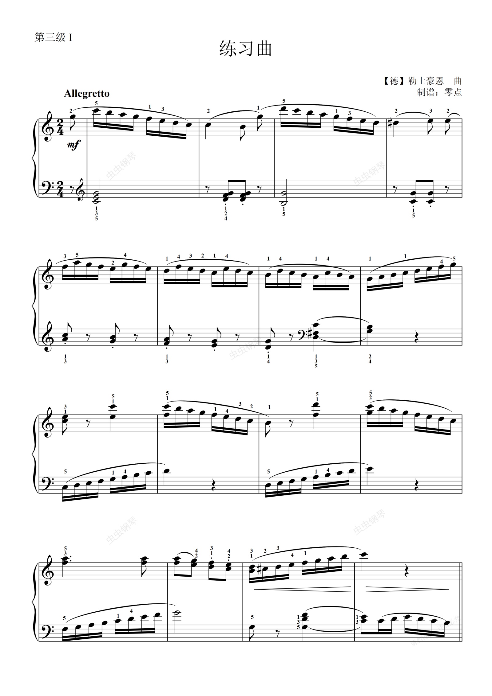 钢琴谱:第三级  练习曲