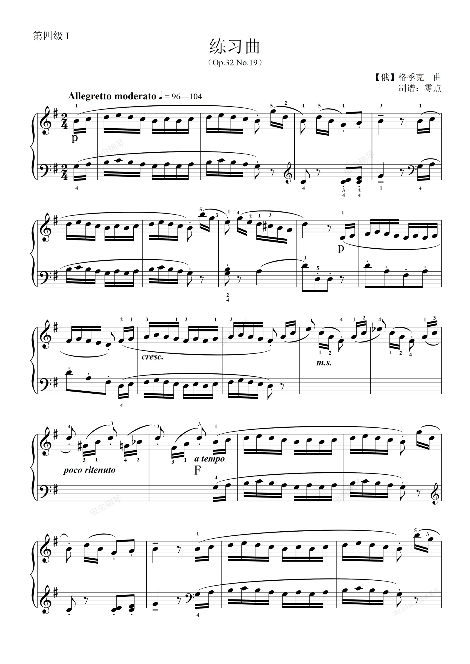 钢琴谱:第四级 练习曲(Op.32 No.19)