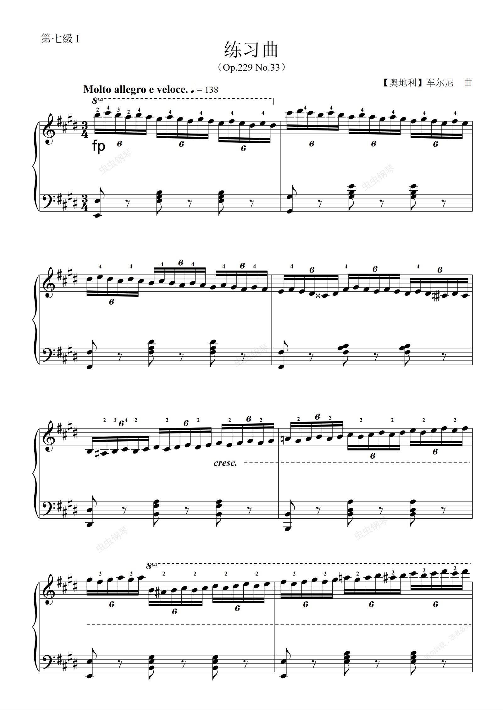 钢琴谱:第七级 练习曲(Op.229 No.33)