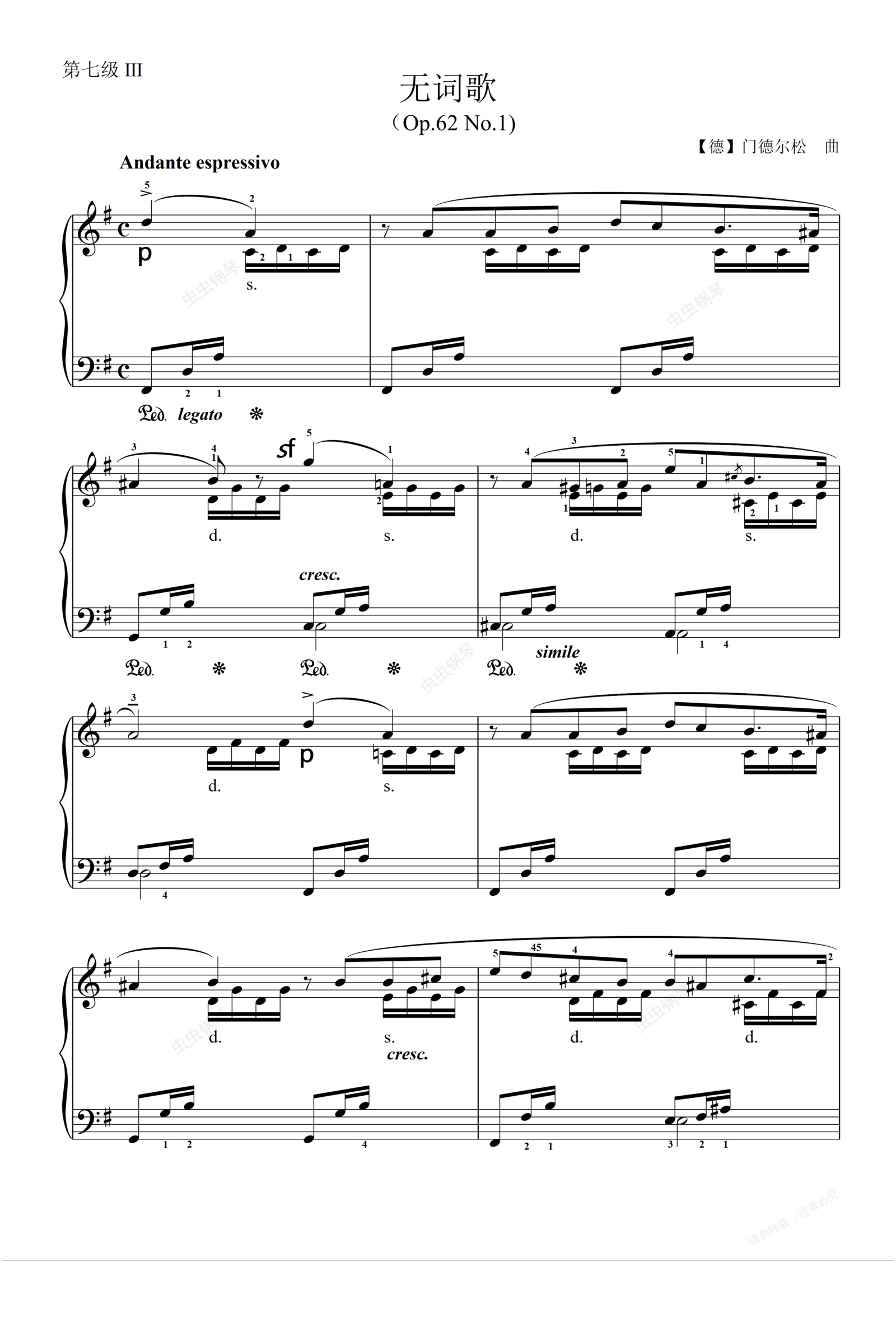 钢琴谱:第七级 无词歌(Op.62 No.1)