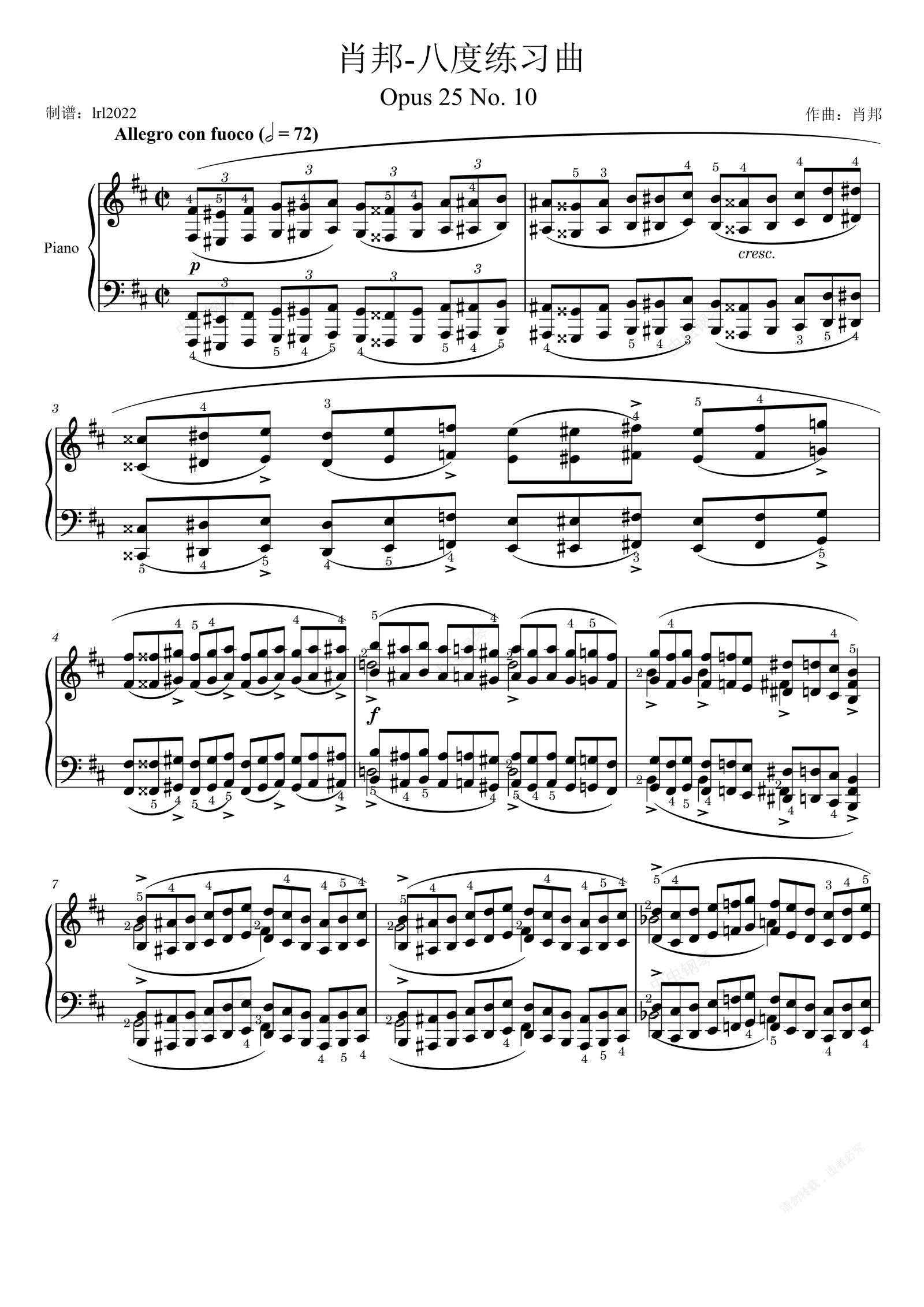 钢琴谱:肖邦-八度练习曲-op.25 No.10-完整还原版-附指法-雷雨
