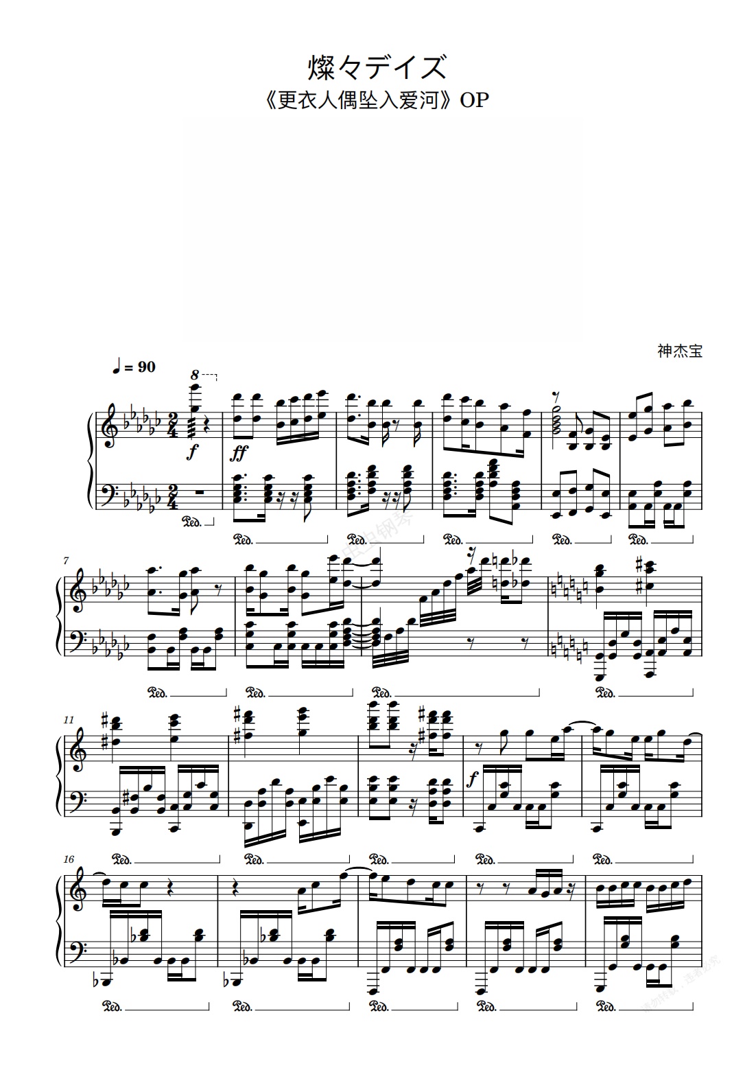 钢琴谱:更衣人偶坠入爱河OP(《燦々デイズ》)