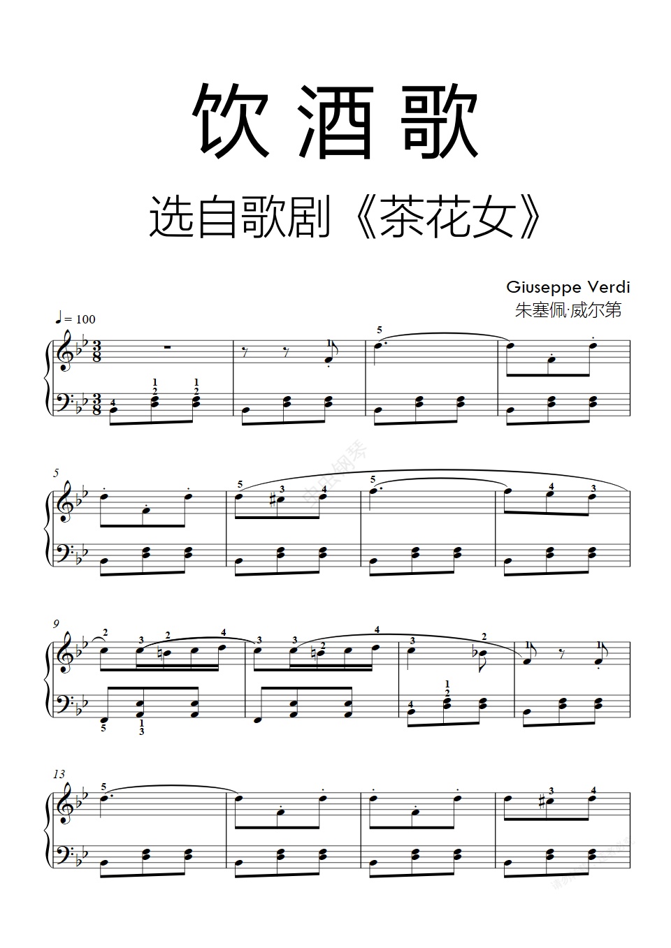钢琴谱:饮酒歌(祝酒歌)主题选自歌剧茶花女简易改编-蒙童趣味补给
