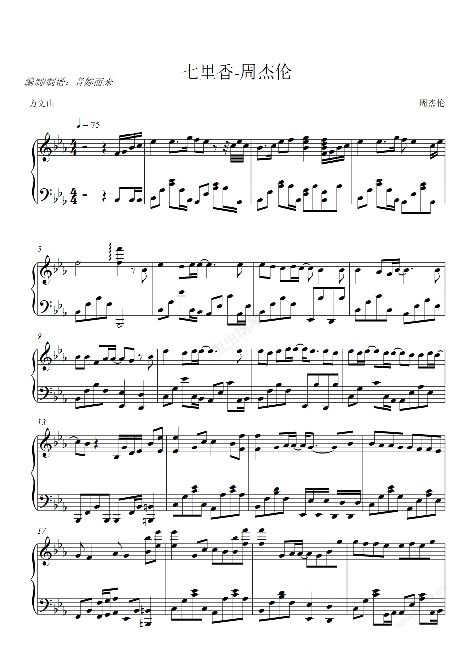 钢琴谱:七里香-周杰伦 【精编+极高还原】